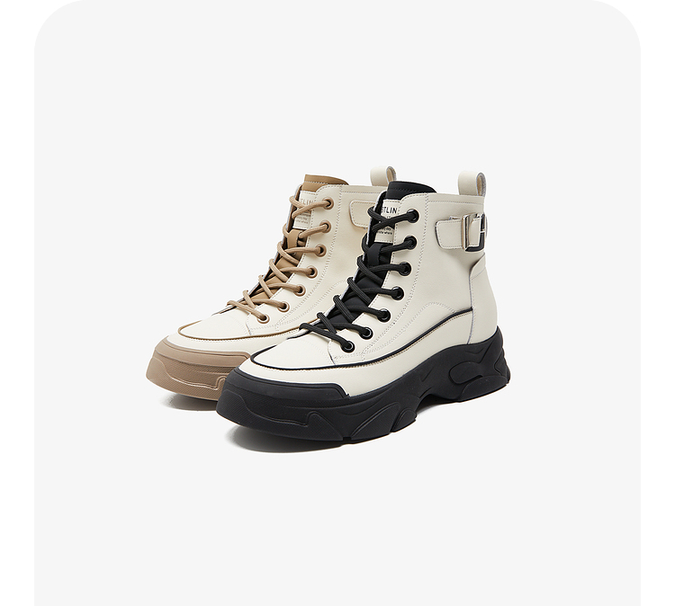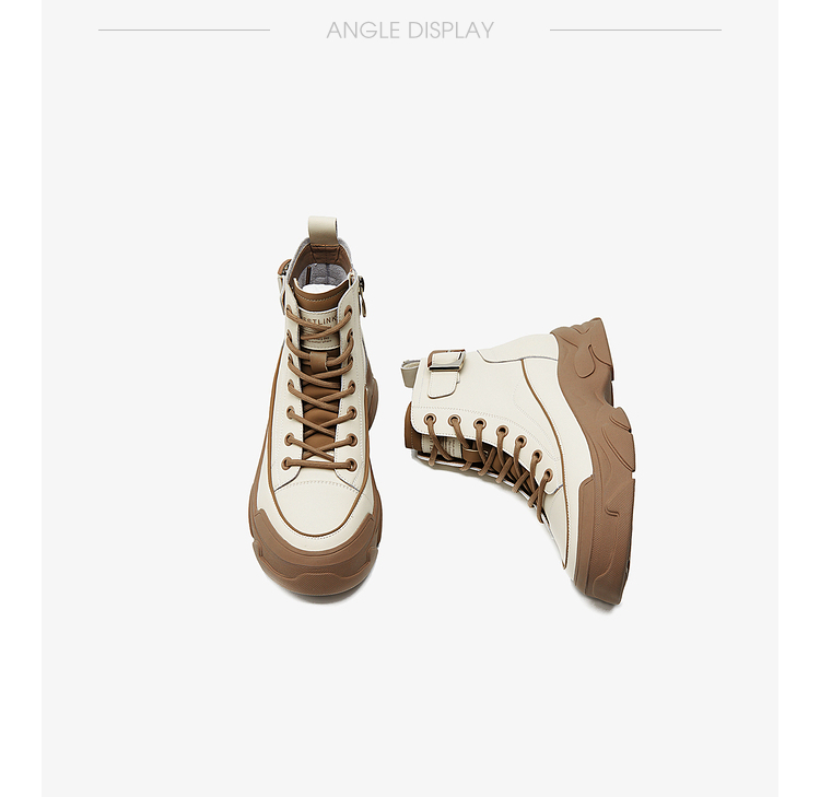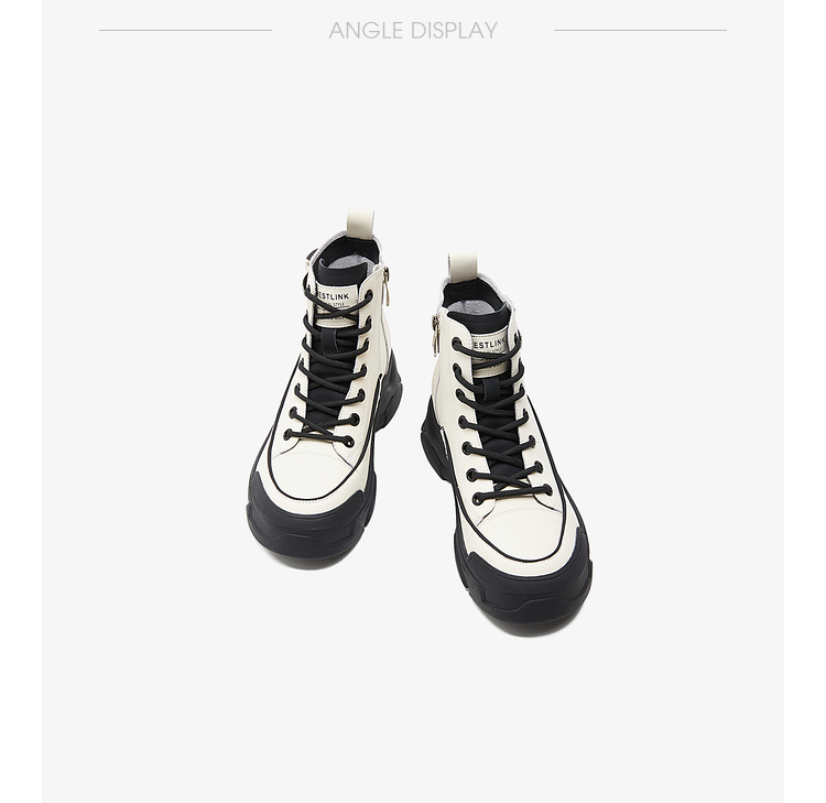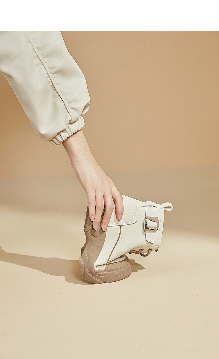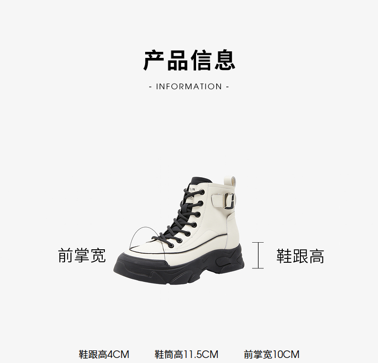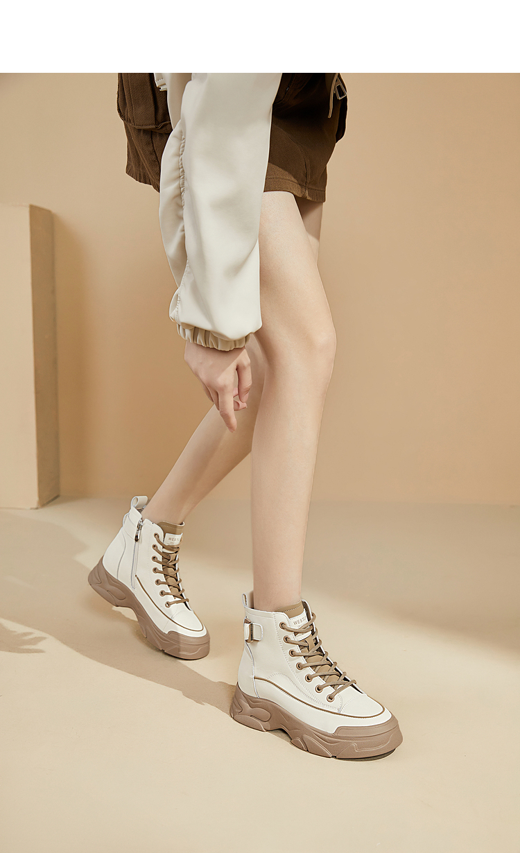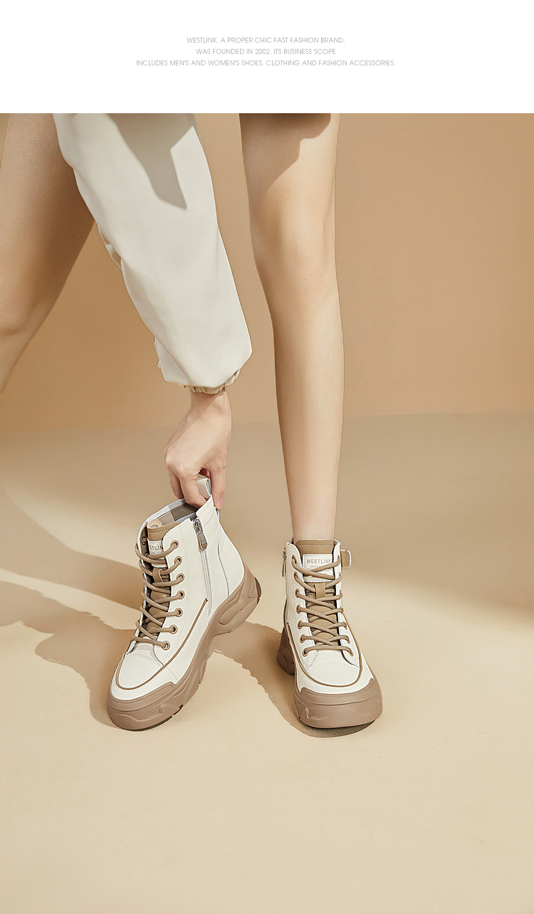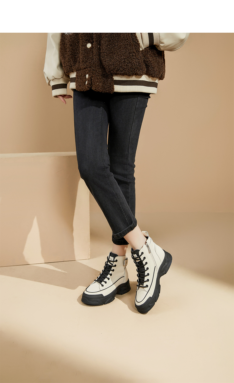 西遇白色马丁靴女新款秋冬休闲运动复古户外工装靴厚底短靴子V0034169