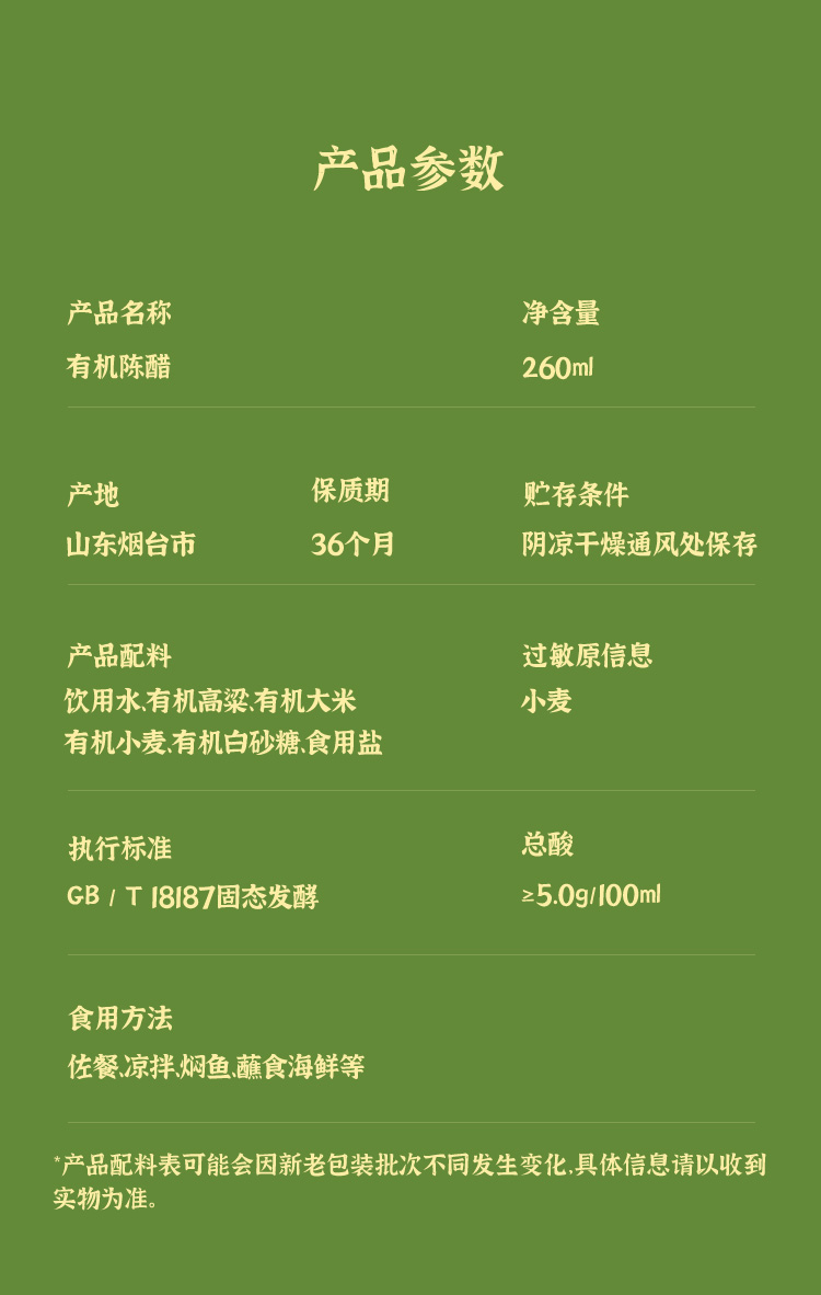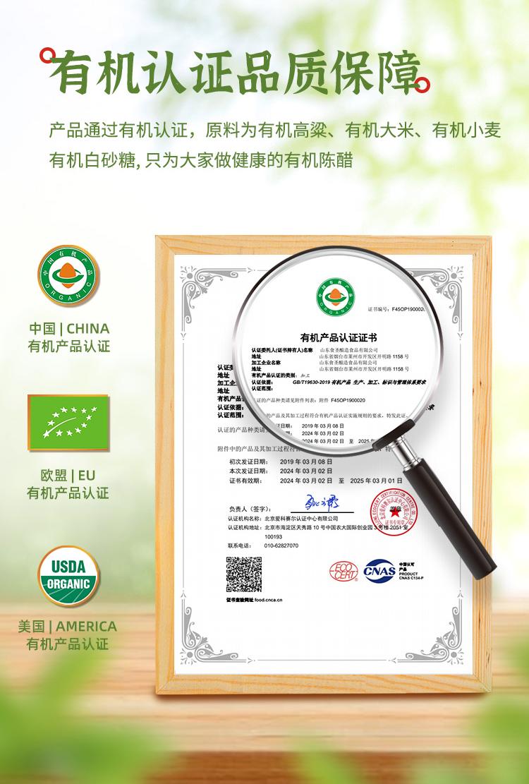 食圣 有机陈醋260ml瓶装