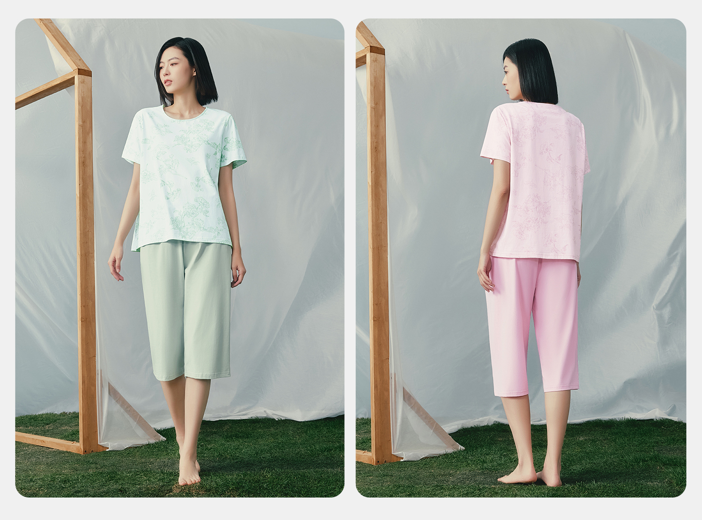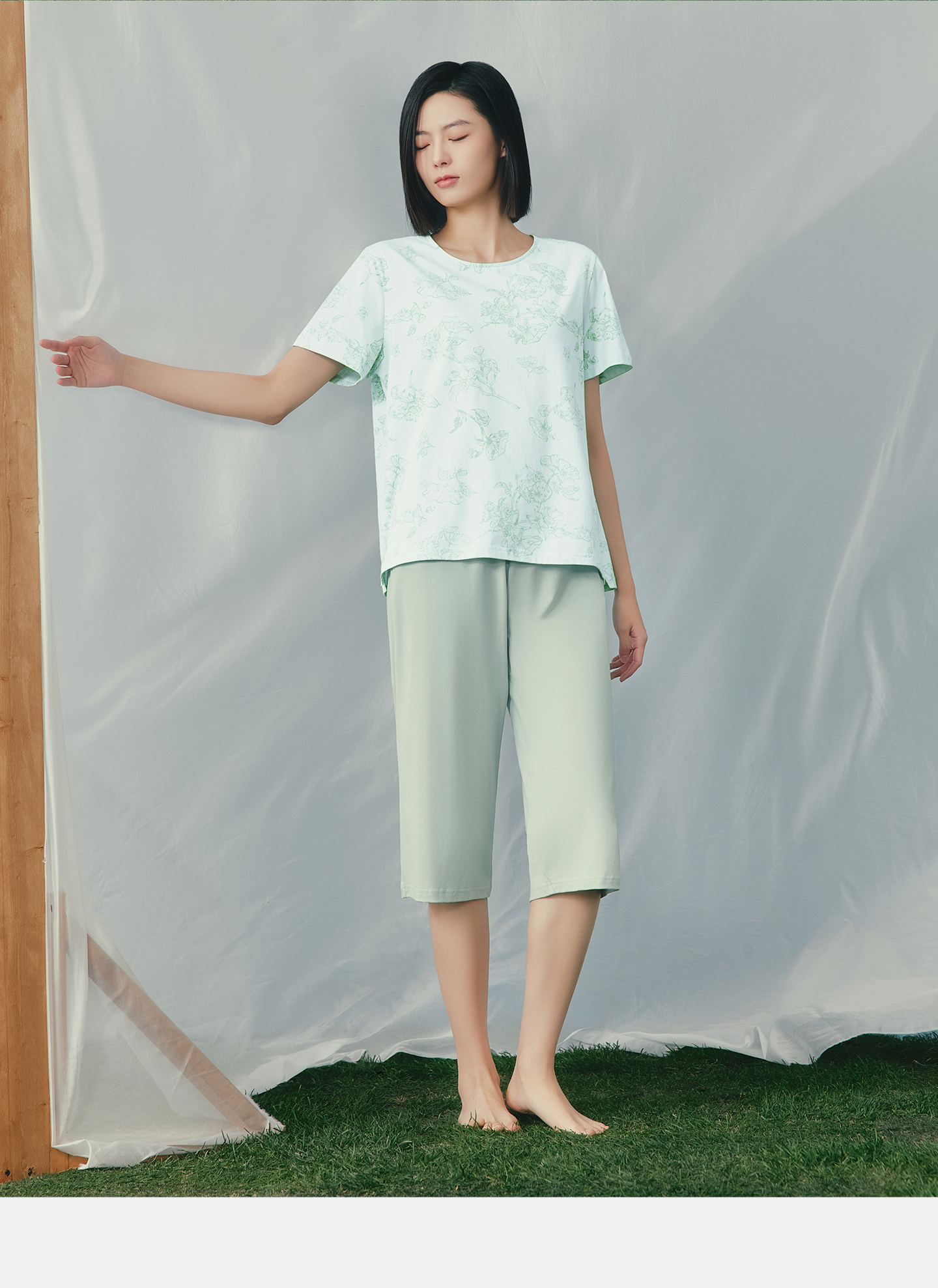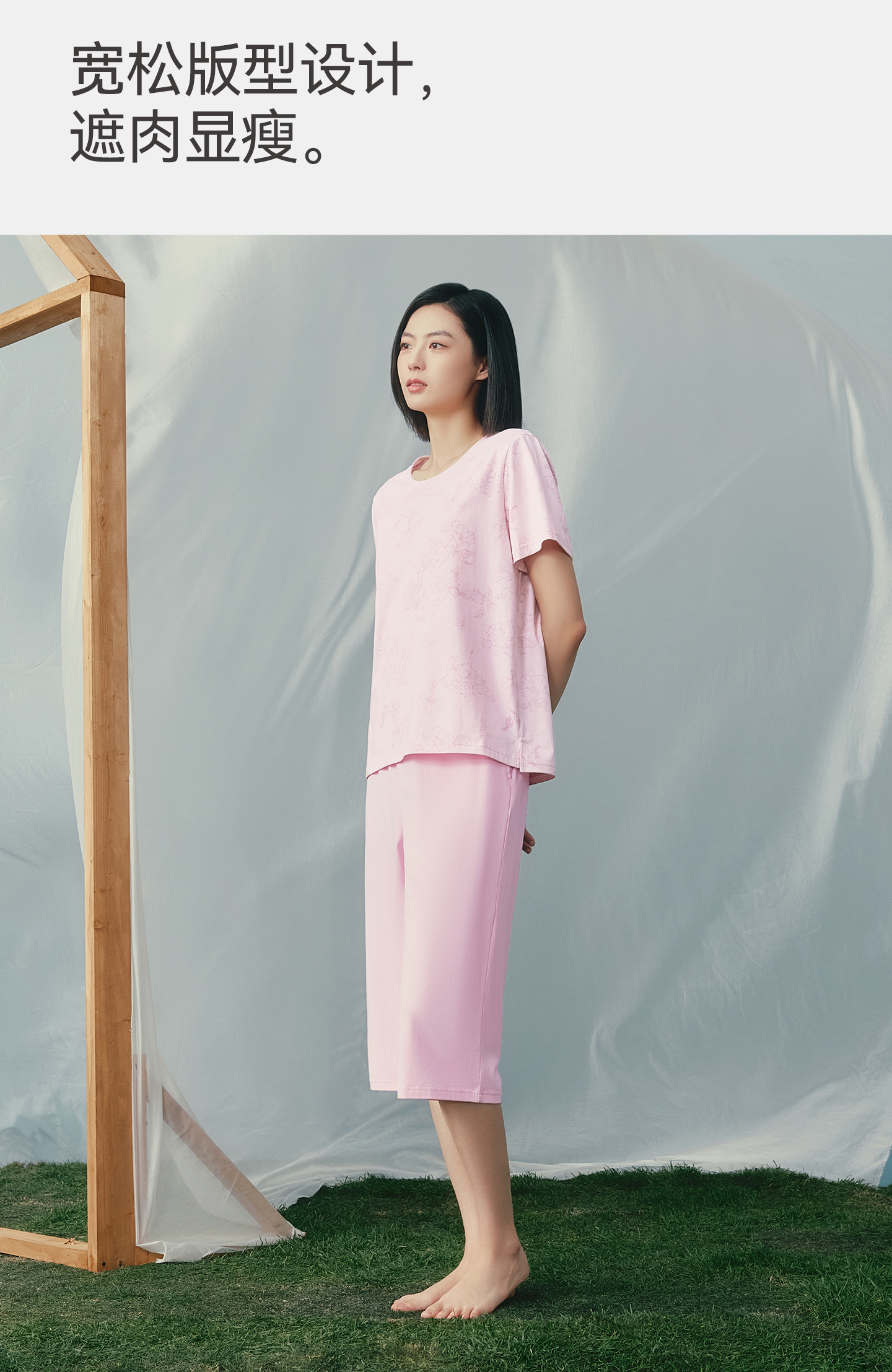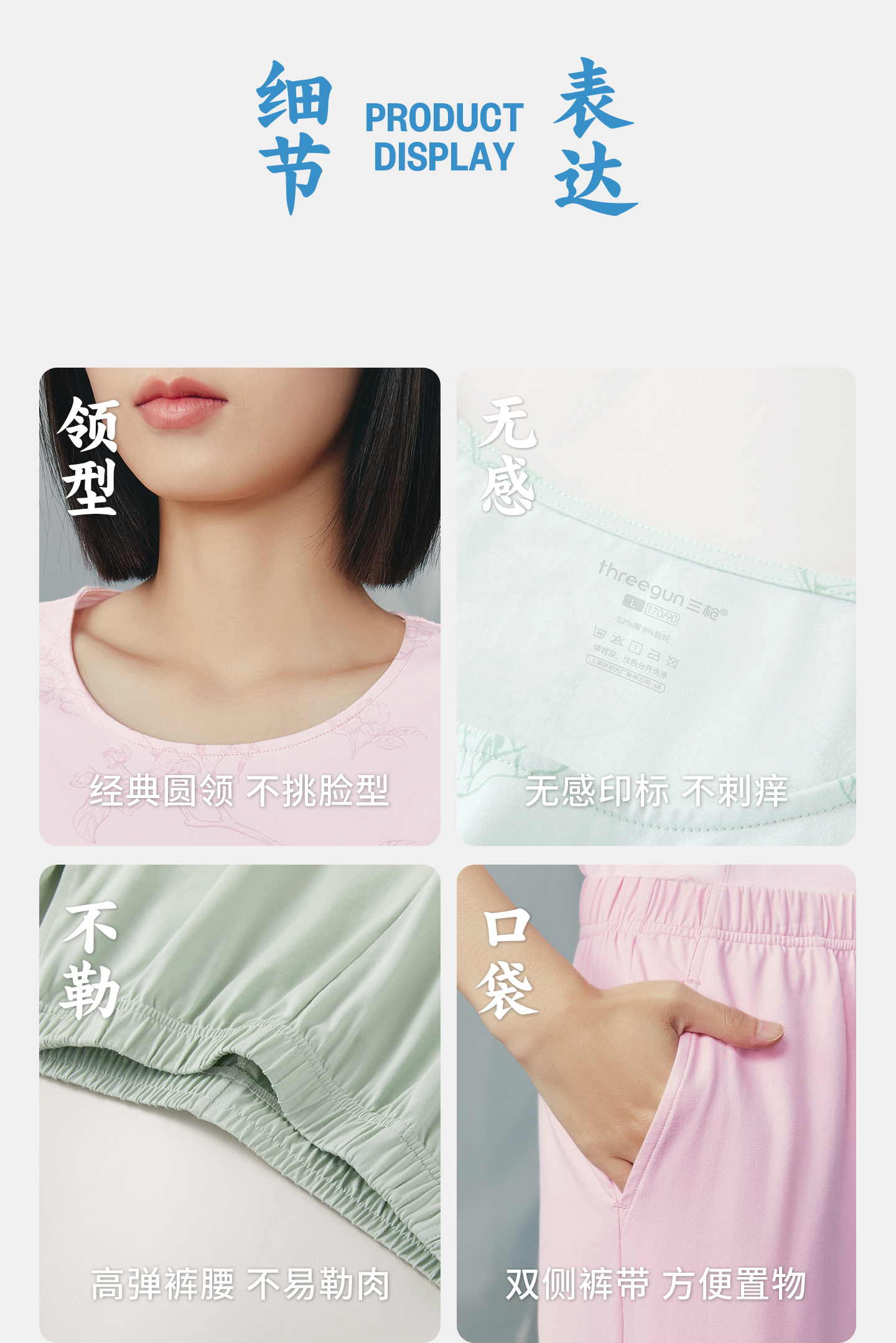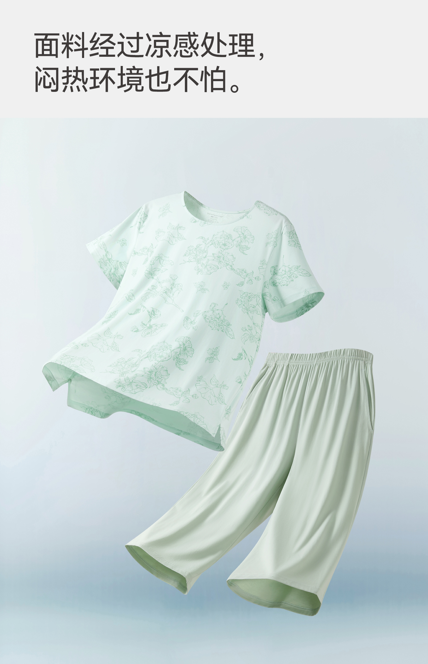 Threegun三枪 冰泉棉圆领短袖中裤女家居套-T80153D02