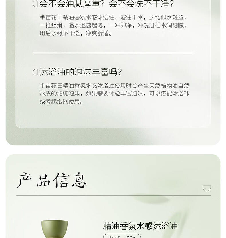 半亩花田 精油香氛水感沐浴油400g