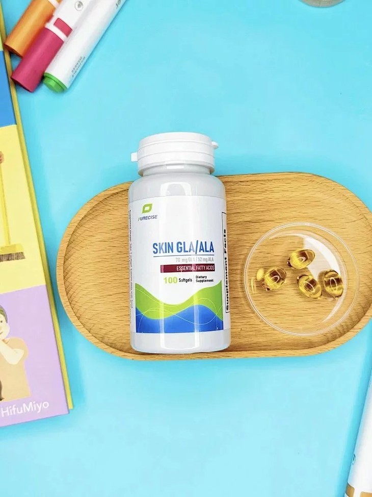 Purecise品牌的Skin GLA/ALA 湿疹因子脂肪酸产品专项靶向皮肤问题,含有足量黑醋栗籽油脂,皮肤菌群、平衡身体脂肪酸。