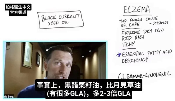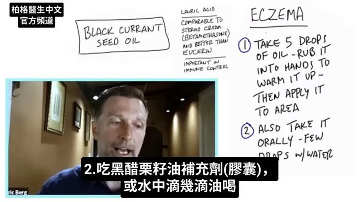 #1 濕疹蕞佳方法: • 黑醋栗籽油black currant seed oil (GLA,γ次亞麻油酸) 做法: 1. 買黑醋栗籽油black currant seed oil,手上滴5滴,搓揉加熱,塗濕疹上 2. 吃黑醋栗籽油補充劑(膠囊),或水中滴幾滴黑醋栗籽油,喝下去