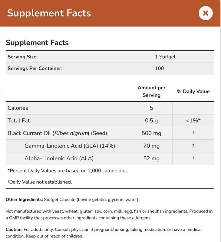 ☆ 单粒高达500mg黑醋栗籽油,含有自然界高比例 14% GLA脂肪酸