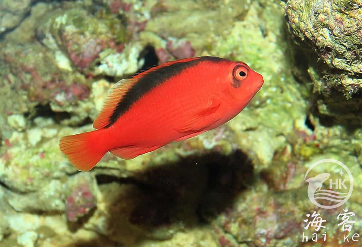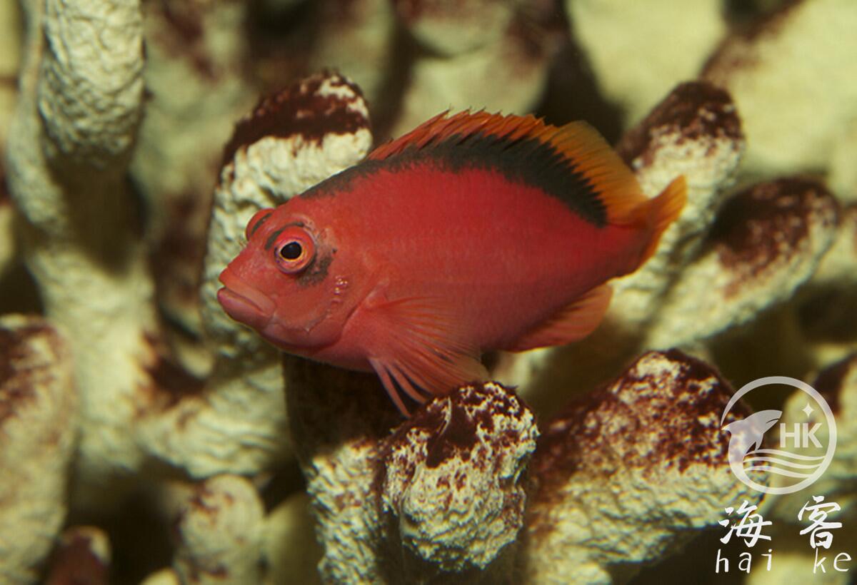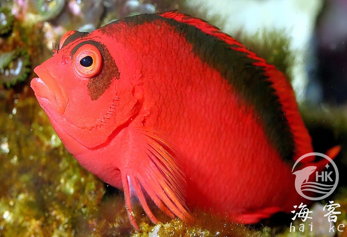香港称作火焰鹰,戏称2B脸。通体亮红色,背鳍及眼睛周围是黑色。它们很漂亮,适合饲养在没有观赏用小虾的珊瑚缸里。