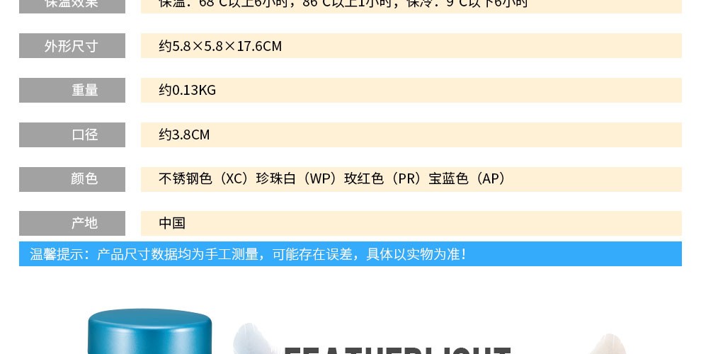 虎牌(TIGER) 保温杯 不锈钢真空超轻水杯 300ML MMP-G30C