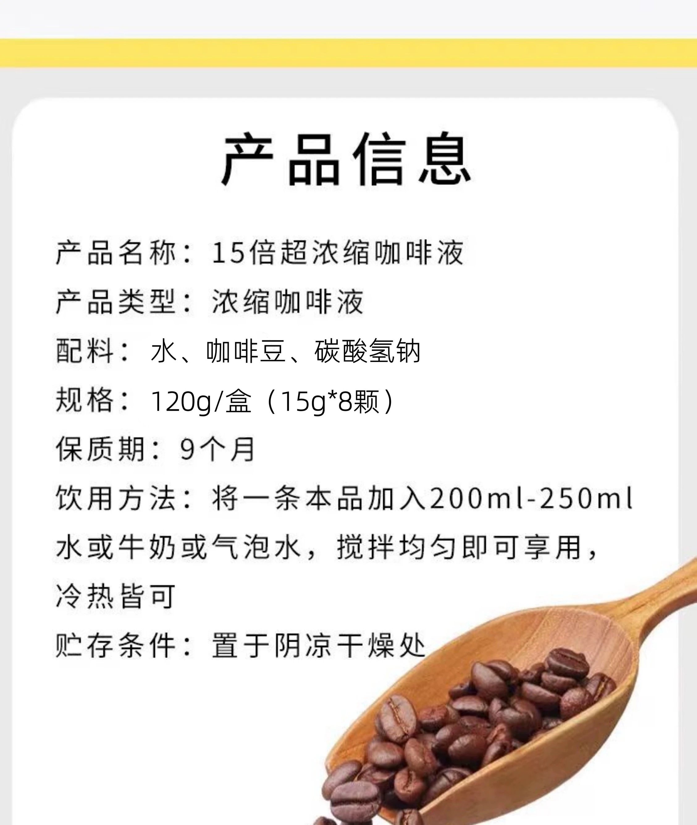 配料表很简单:水、咖啡豆、碳酸氢钠(小苏打)