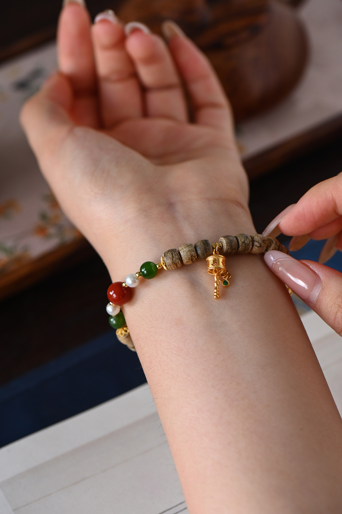 | 配饰: | 银+南红+珍珠+碧玉 |