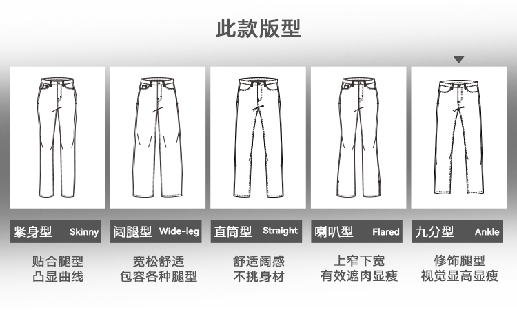 拇指白小牛轻量旅行直筒女士九分裤无限系列
