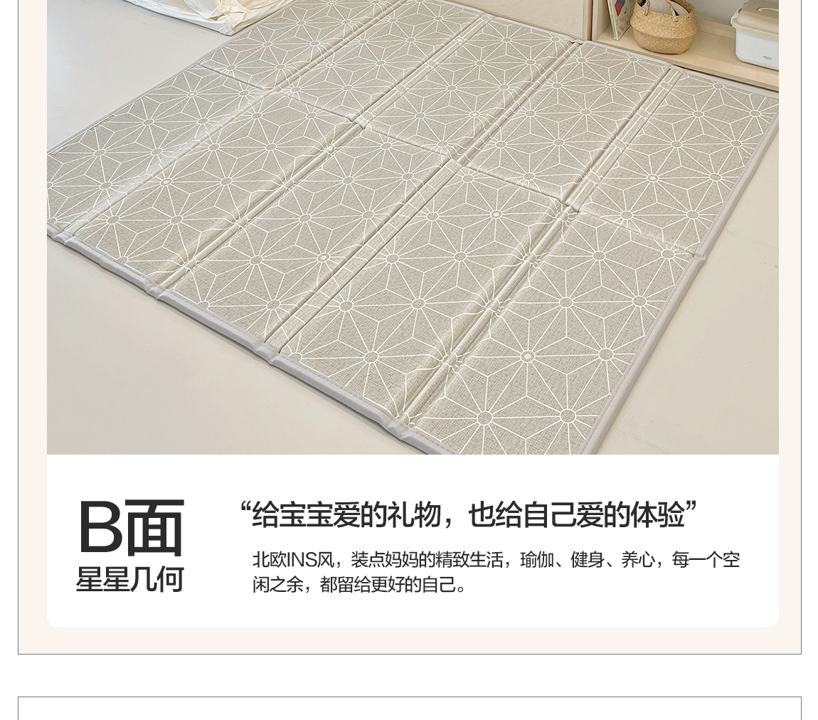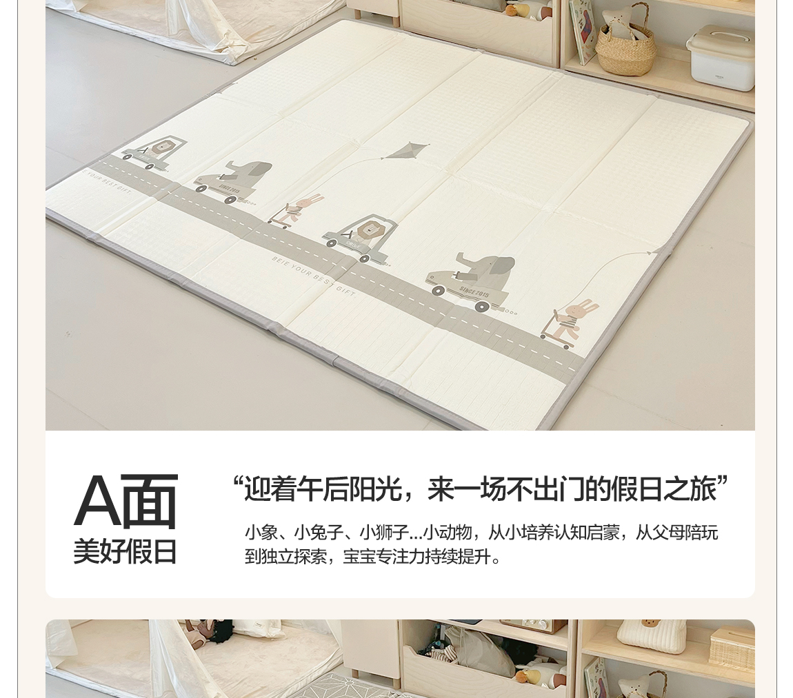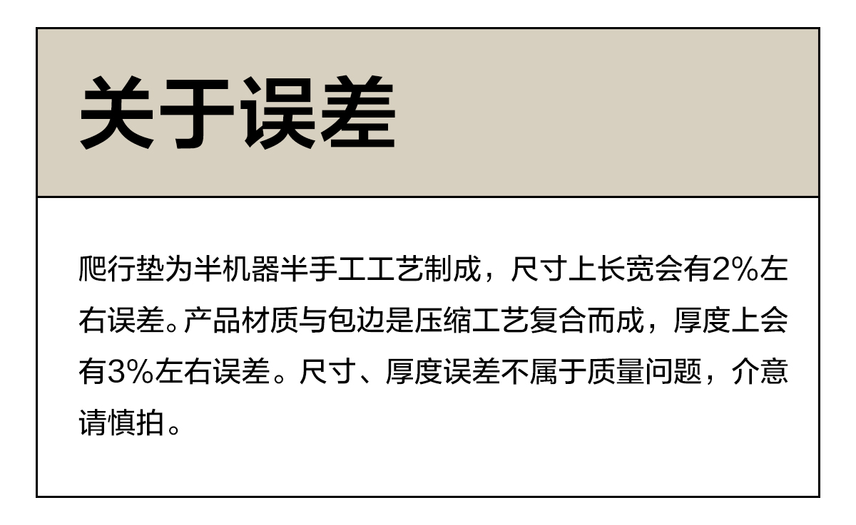 2.爬行垫本身会有折痕以及误差,追求完美 接受不了的勿拍,不退不换。