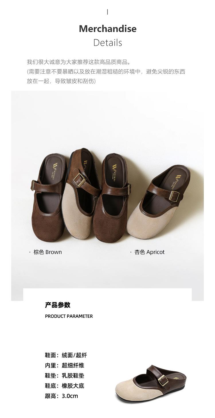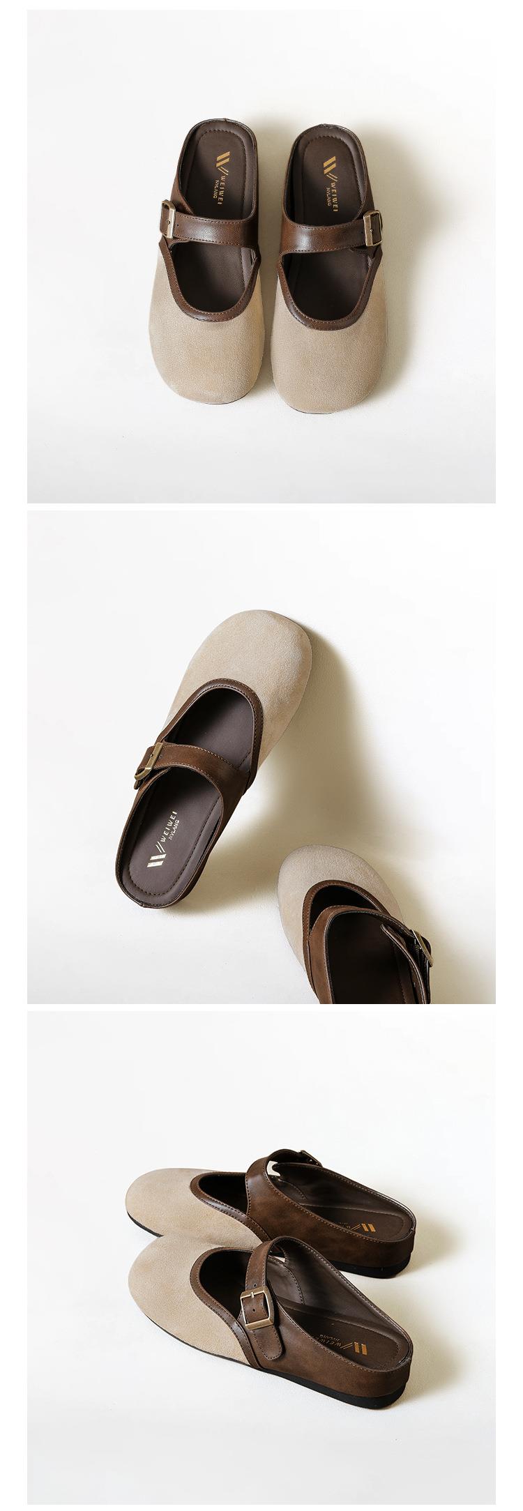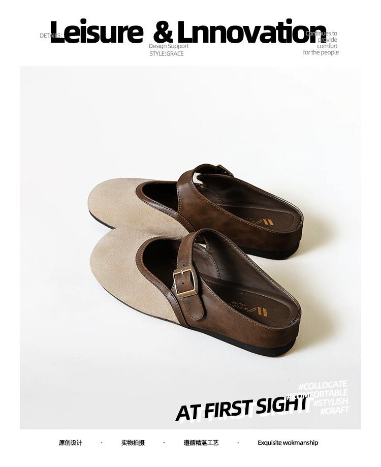 【牛皮拼色包头半拖穆勒鞋】外穿一脚蹬2026春季新款复古勃肯鞋厚底