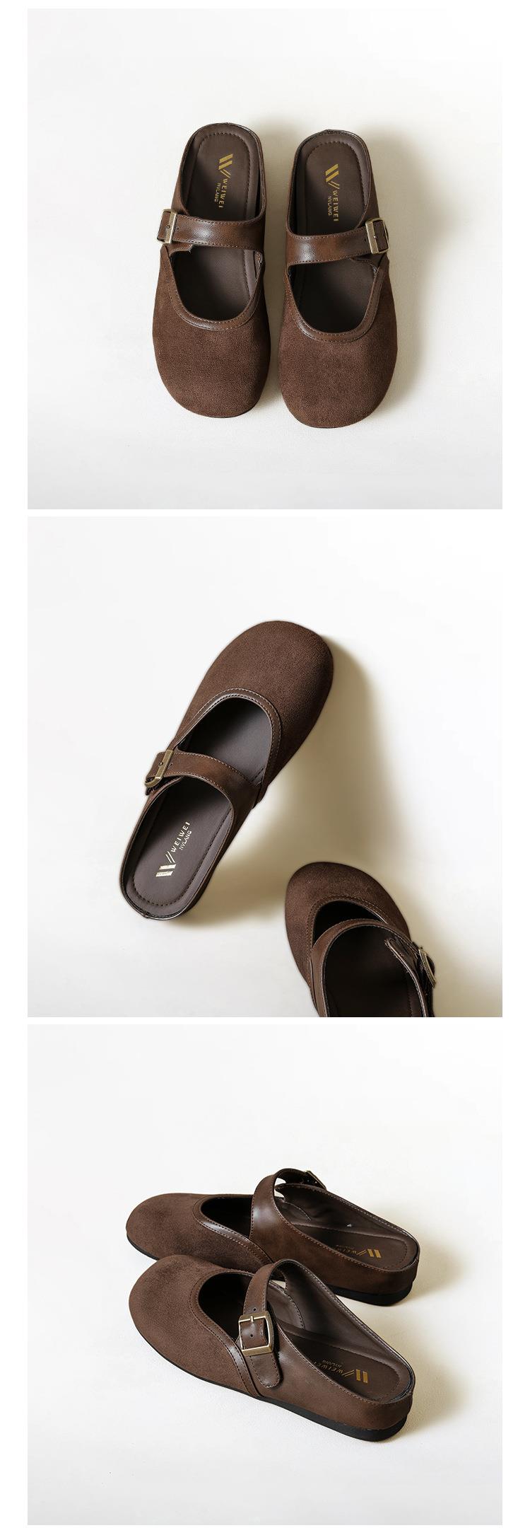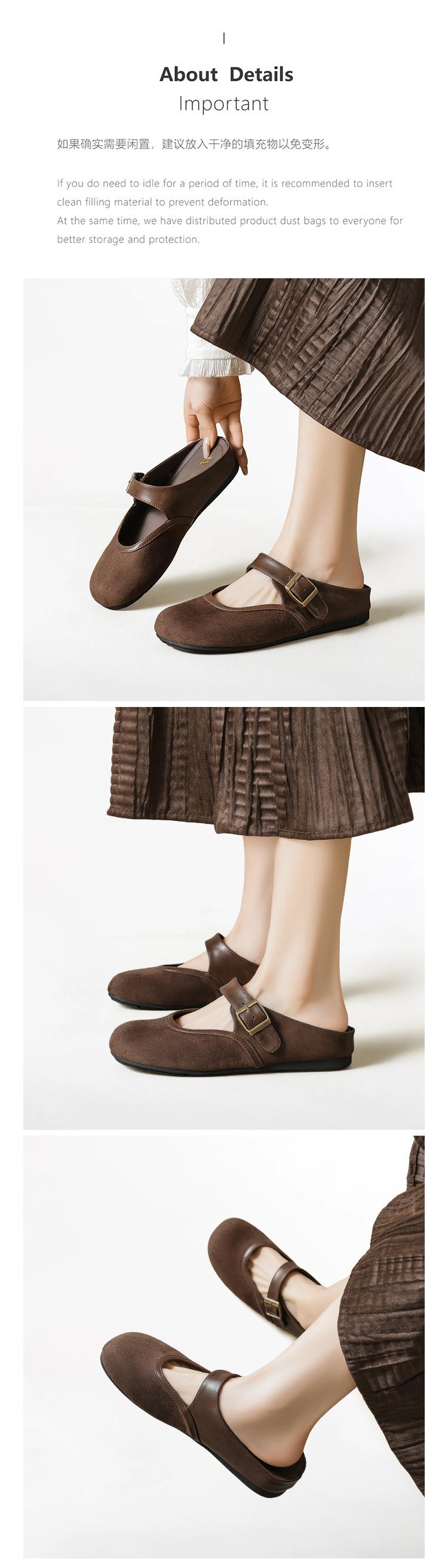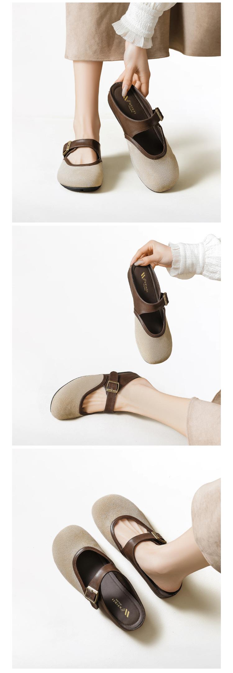 【牛皮拼色包头半拖穆勒鞋】外穿一脚蹬2026春季新款复古勃肯鞋厚底