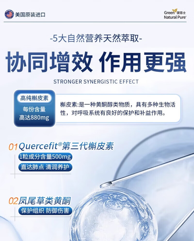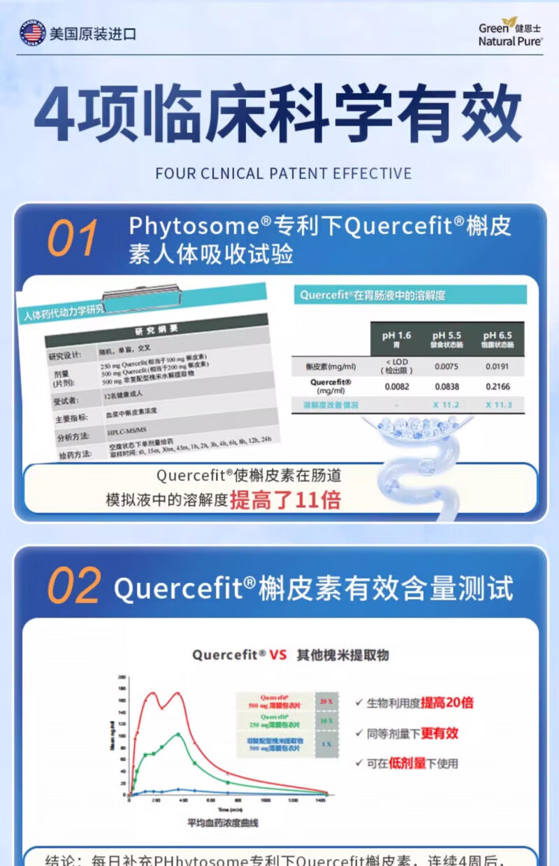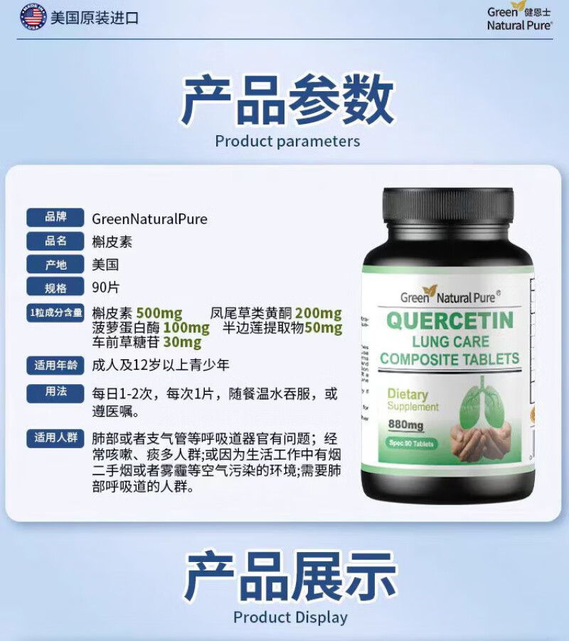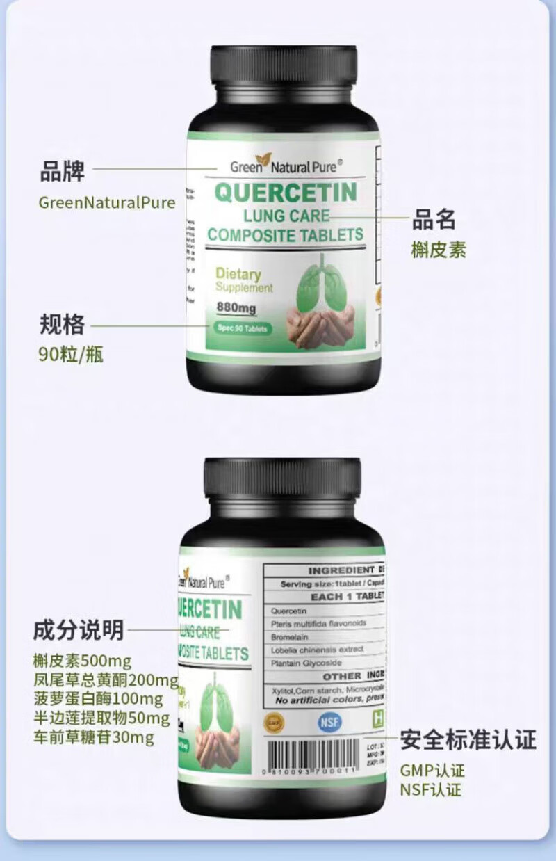 【保税仓】Green Natural Pure槲皮素肺部护理复合片90片