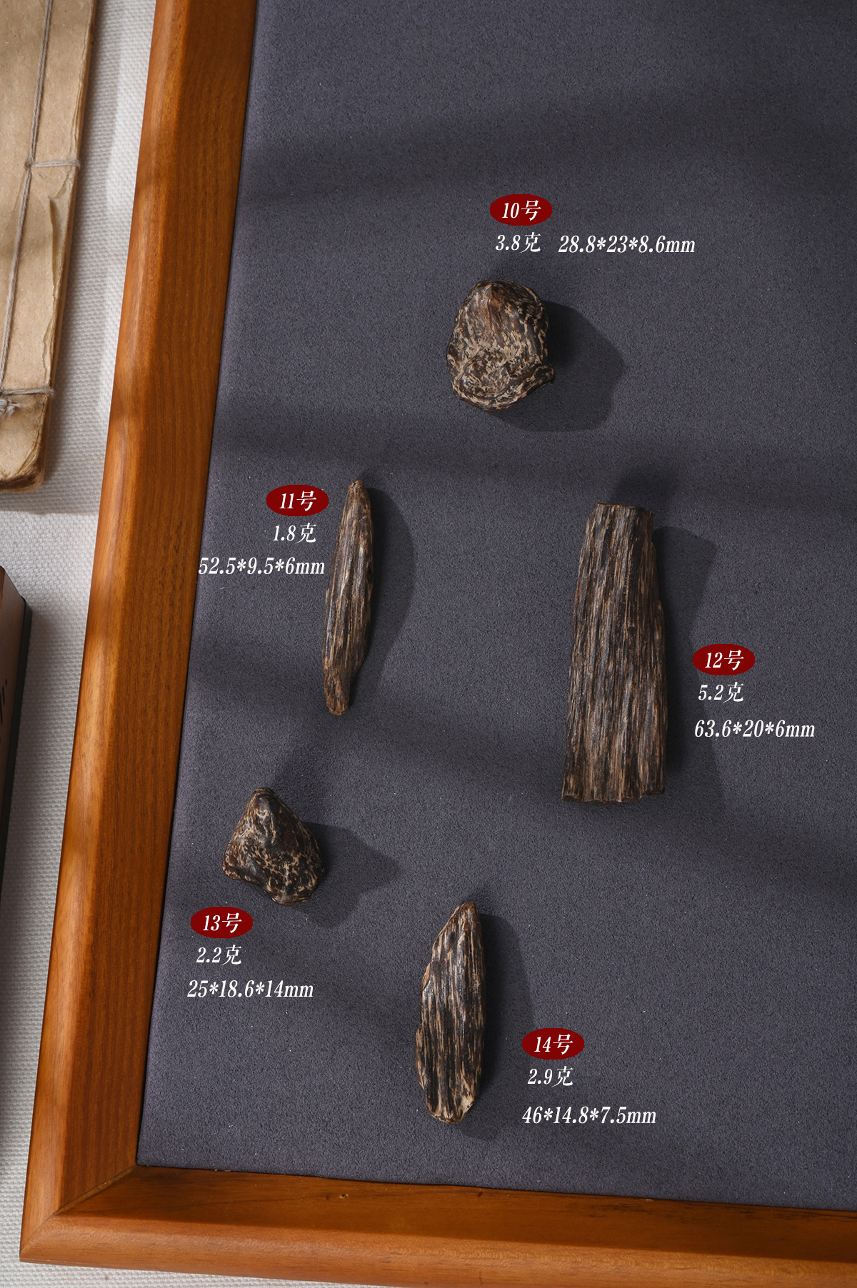 表面纹理:棕黑色的丝状细纹像天然的水墨画,丝丝缕缕特别清晰,这是柬埔寨沉香独有的 “身份证”。