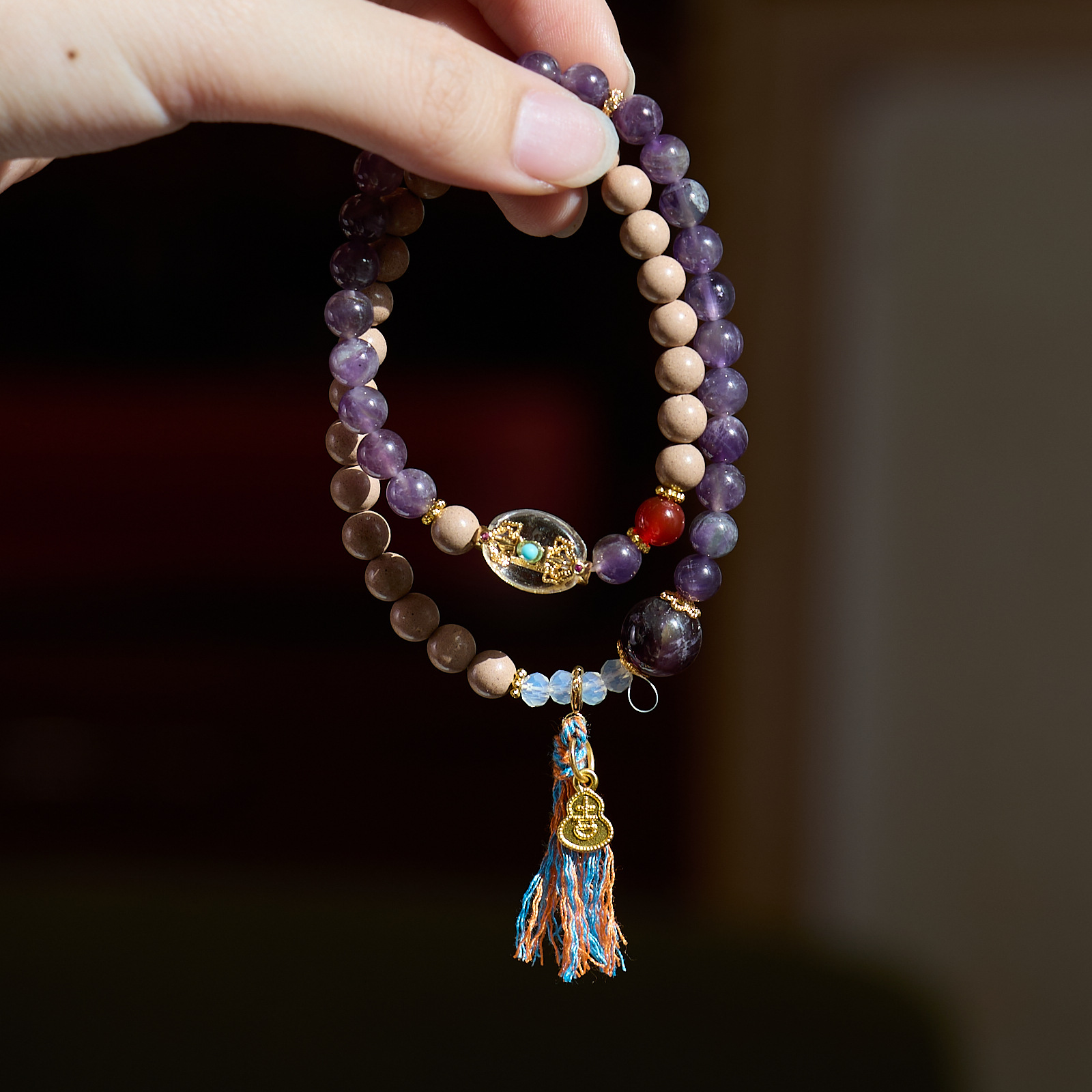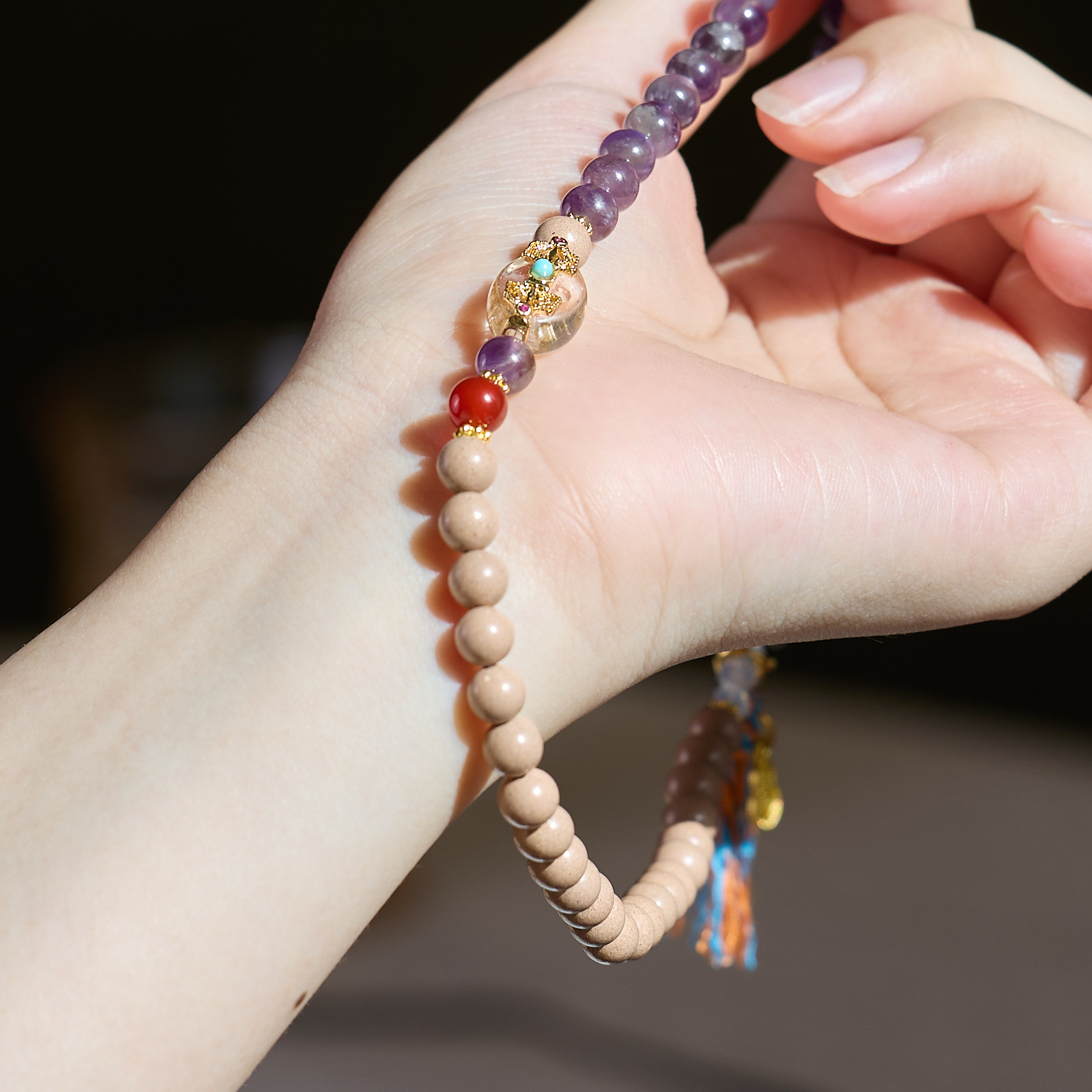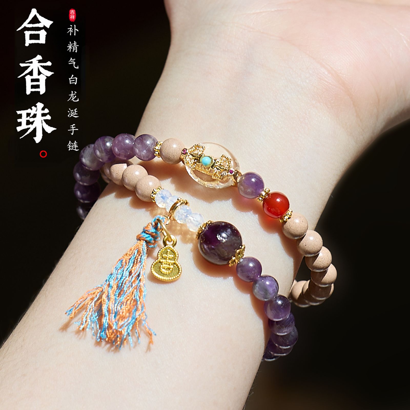 【紫气·白龙涎双圈合香珠手串】敦煌福泽白龙涎合香珠天然紫水晶手链串珠女中草药材文玩手串手饰首饰