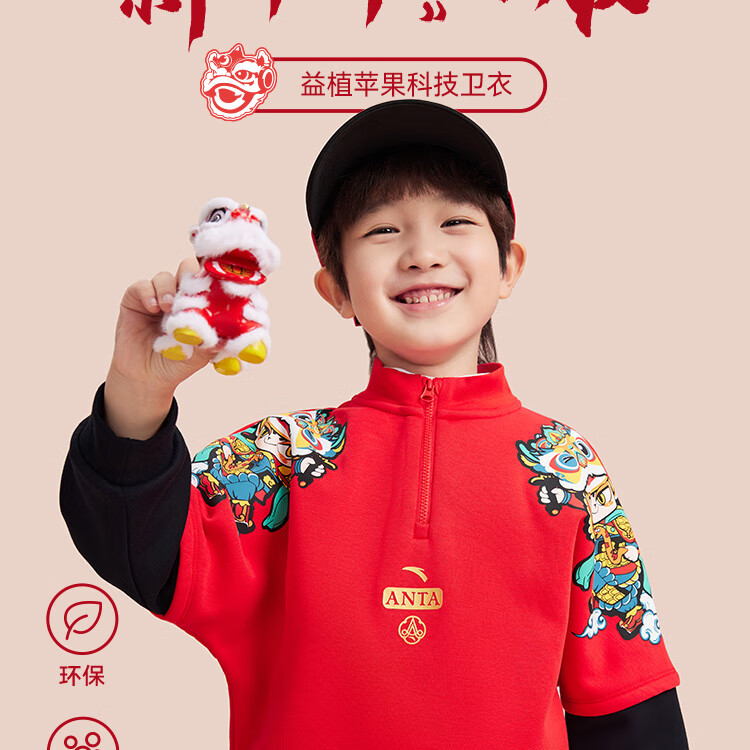 安踏儿童卫衣男小童套头衫2025春季亲肤柔软卫衣百搭上衣352519717