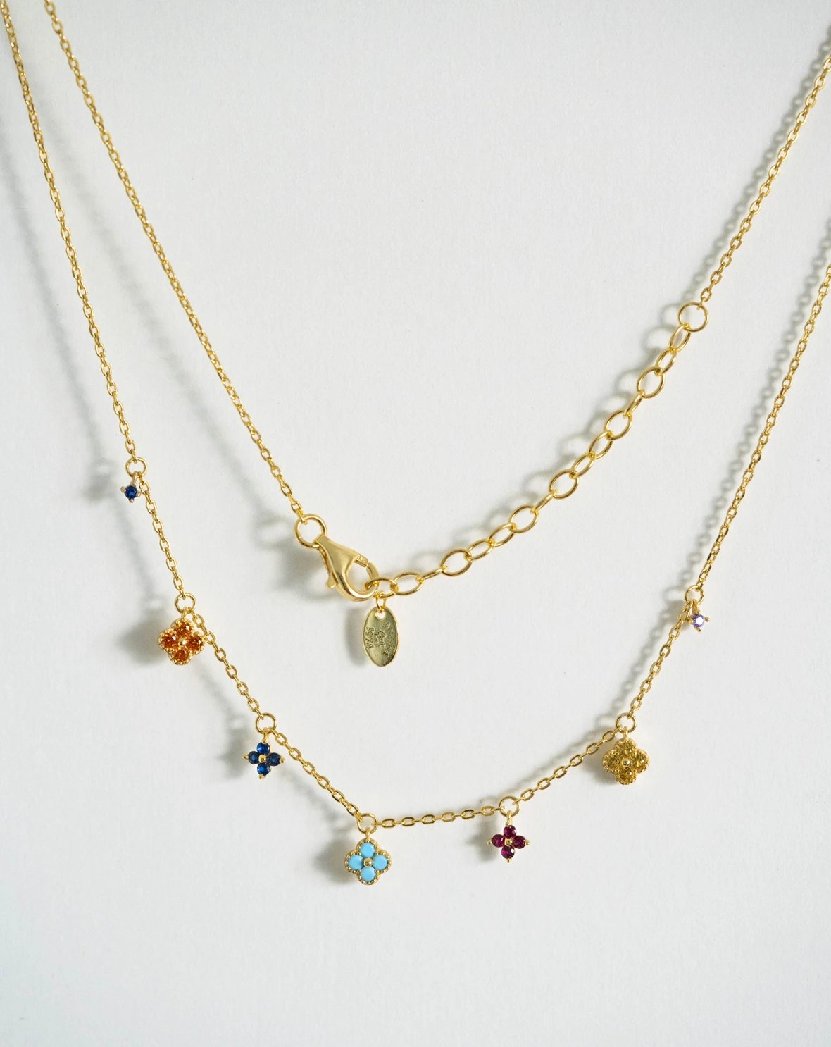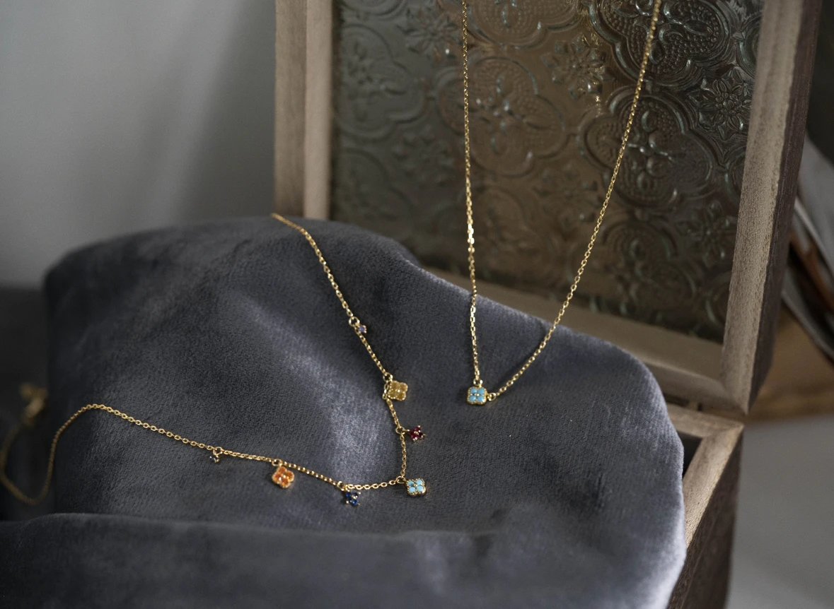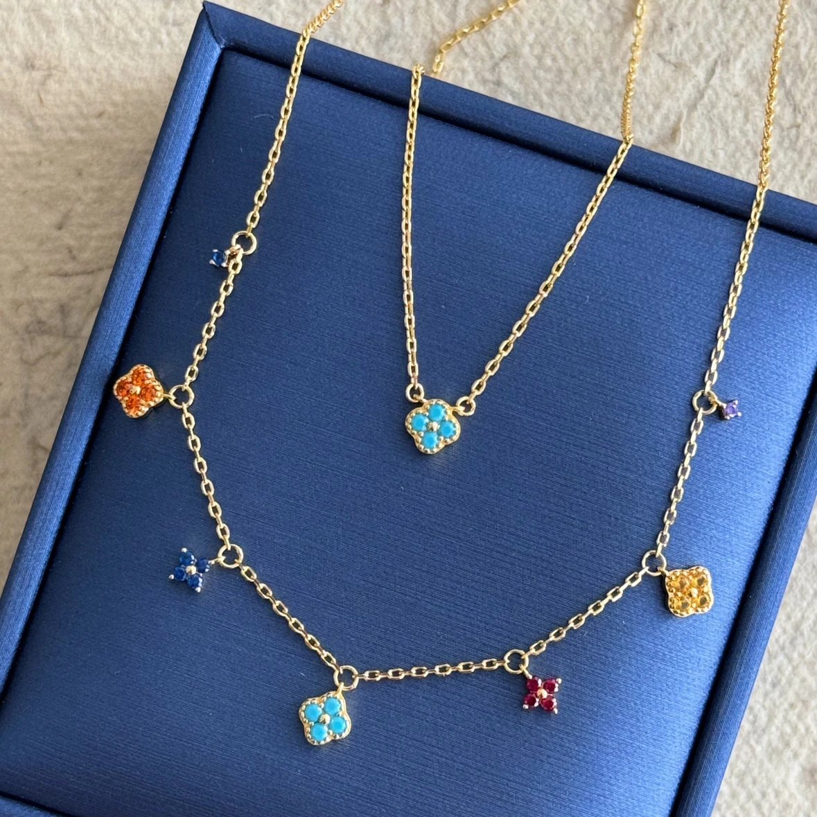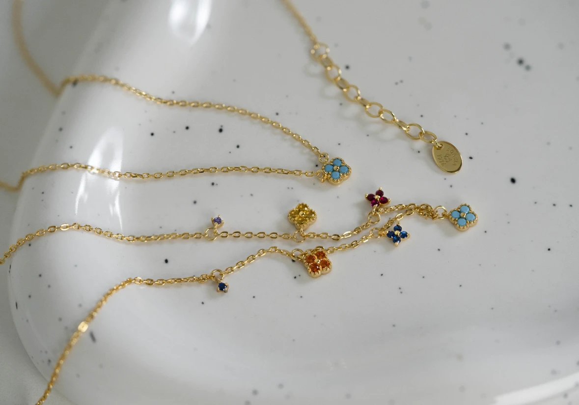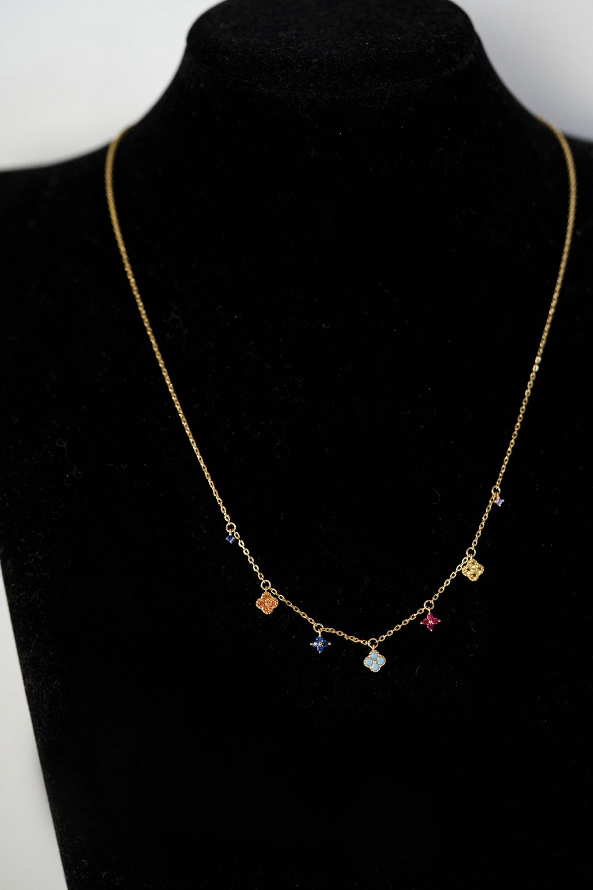 彩色宝石四叶花项链~