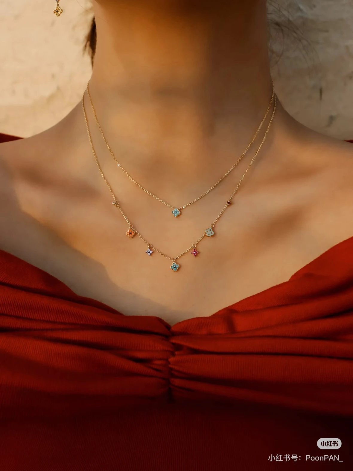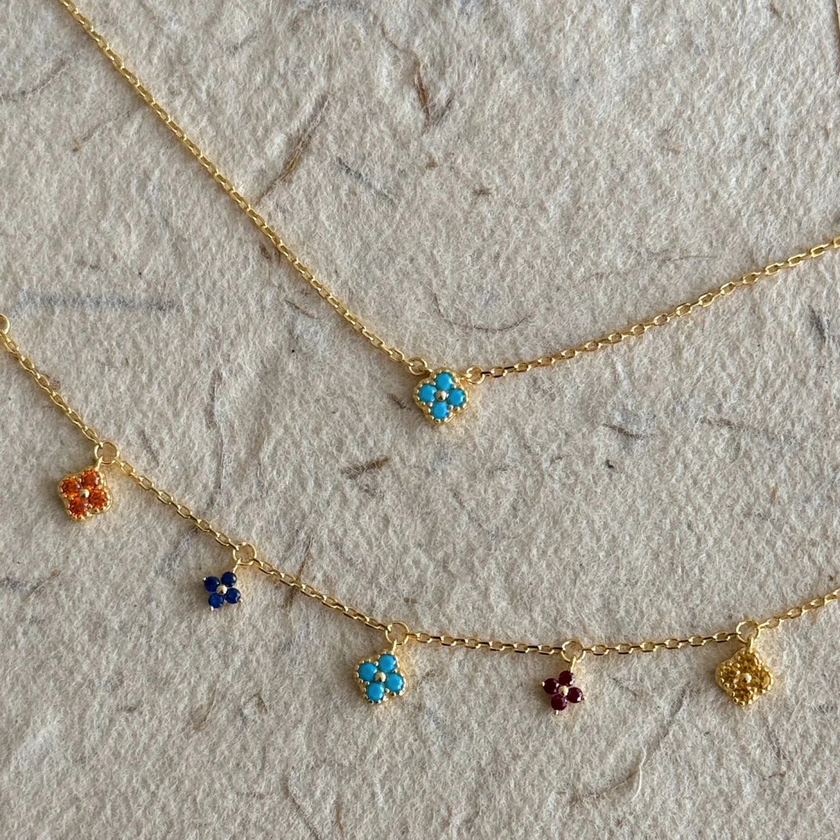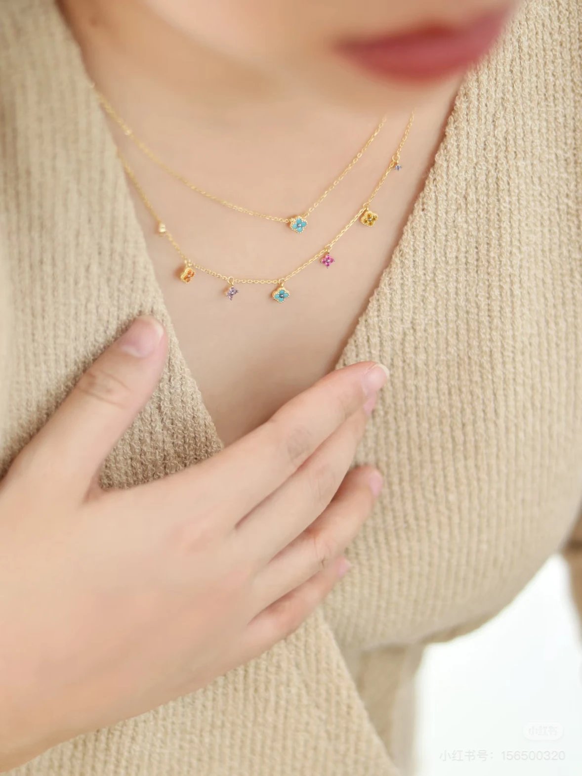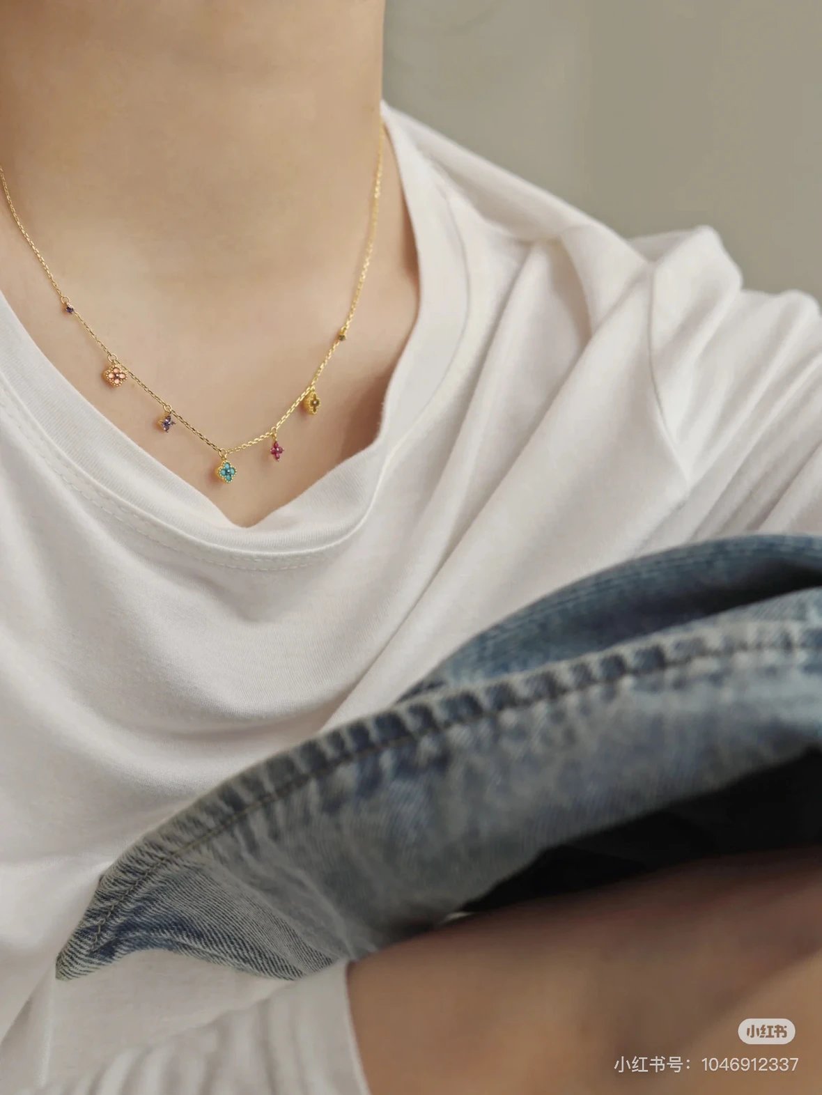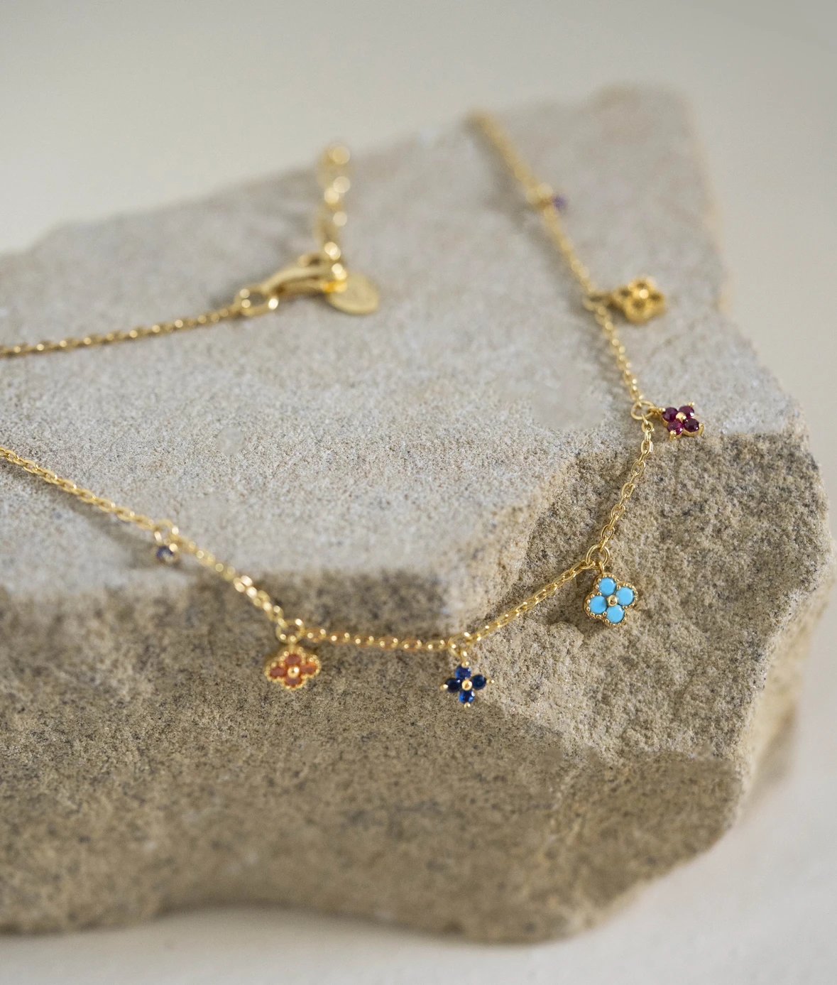 彩色宝石四叶花项链~