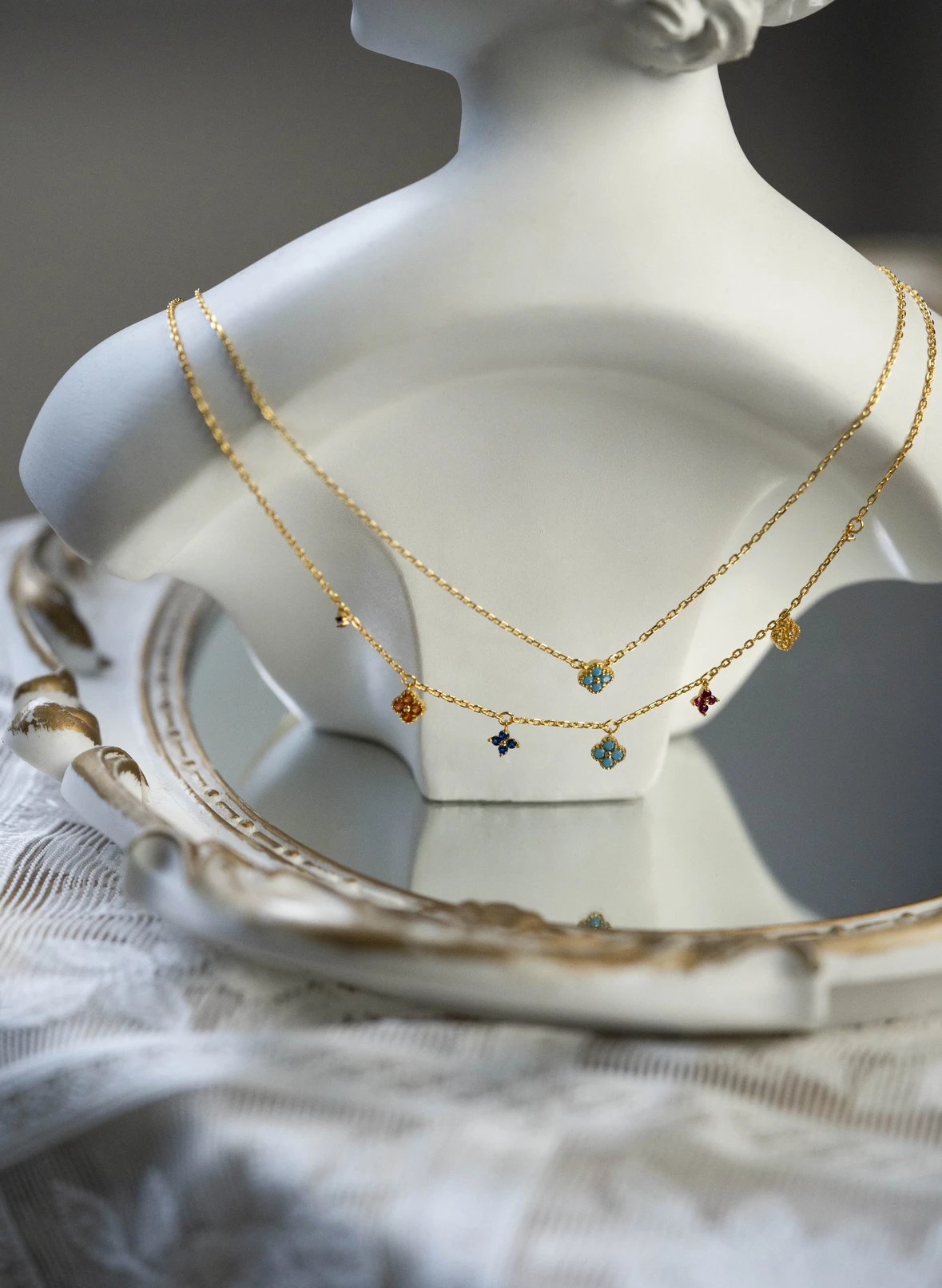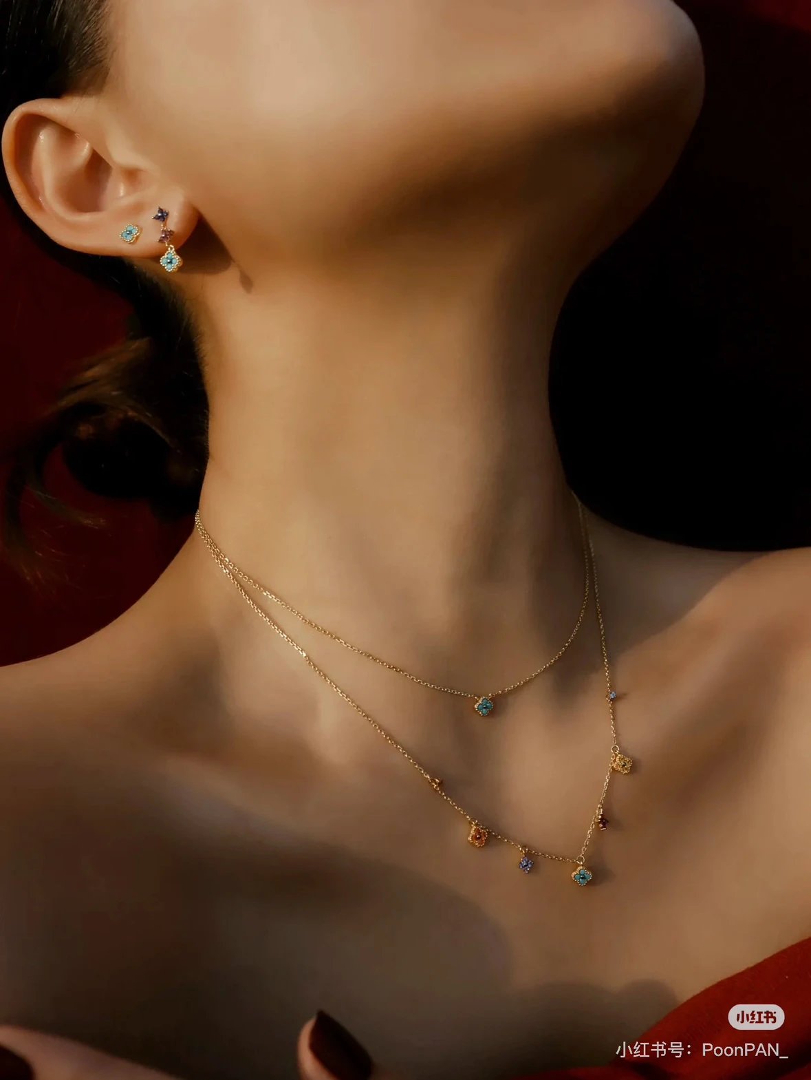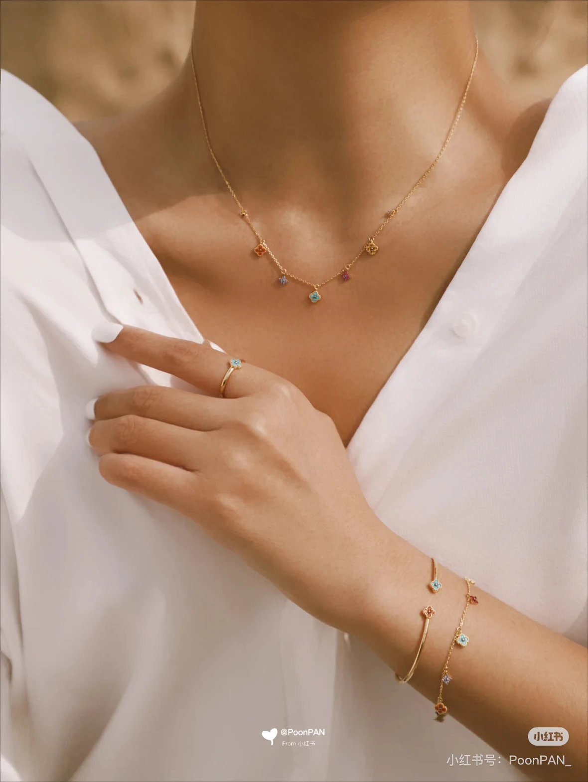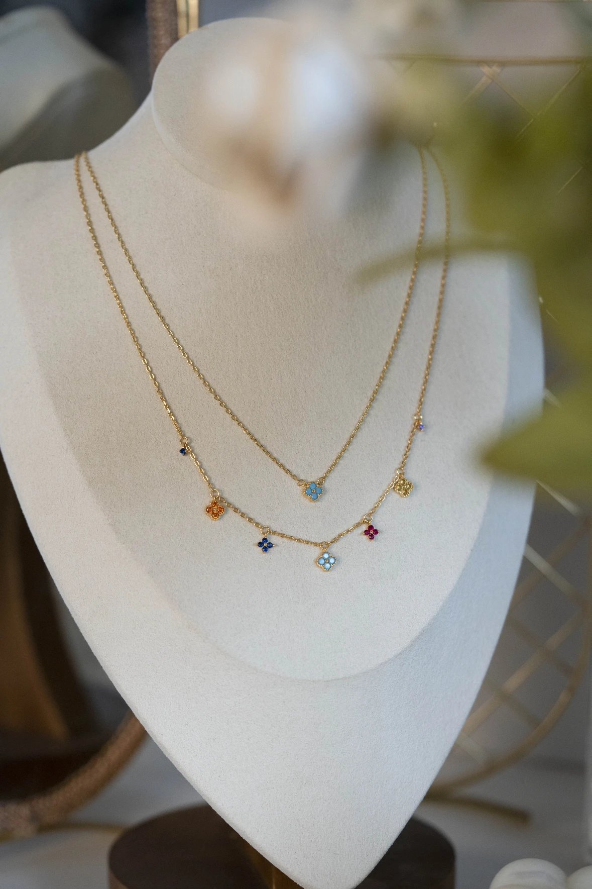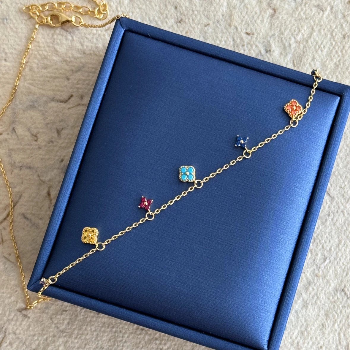 彩色宝石四叶花项链~