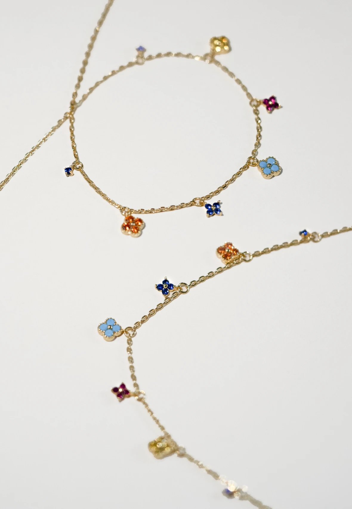 材质:S925银镀18k金+合成立方氧化锆单花长度:37cm+5cm尾链长短可调节多花长度:42cm+5cm尾链长短可调节