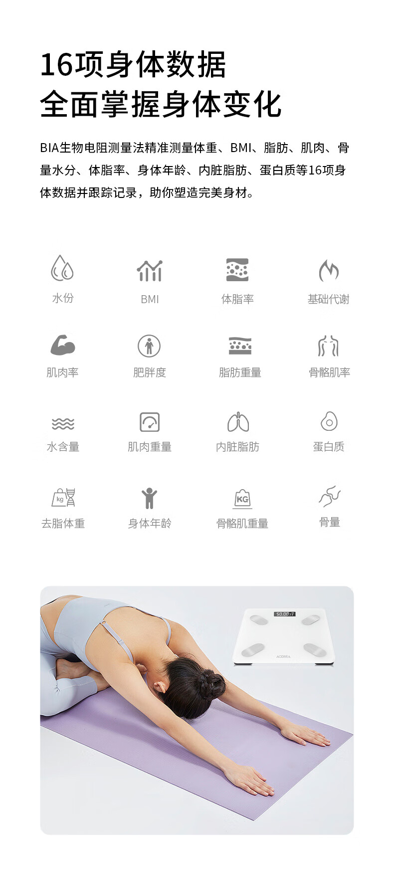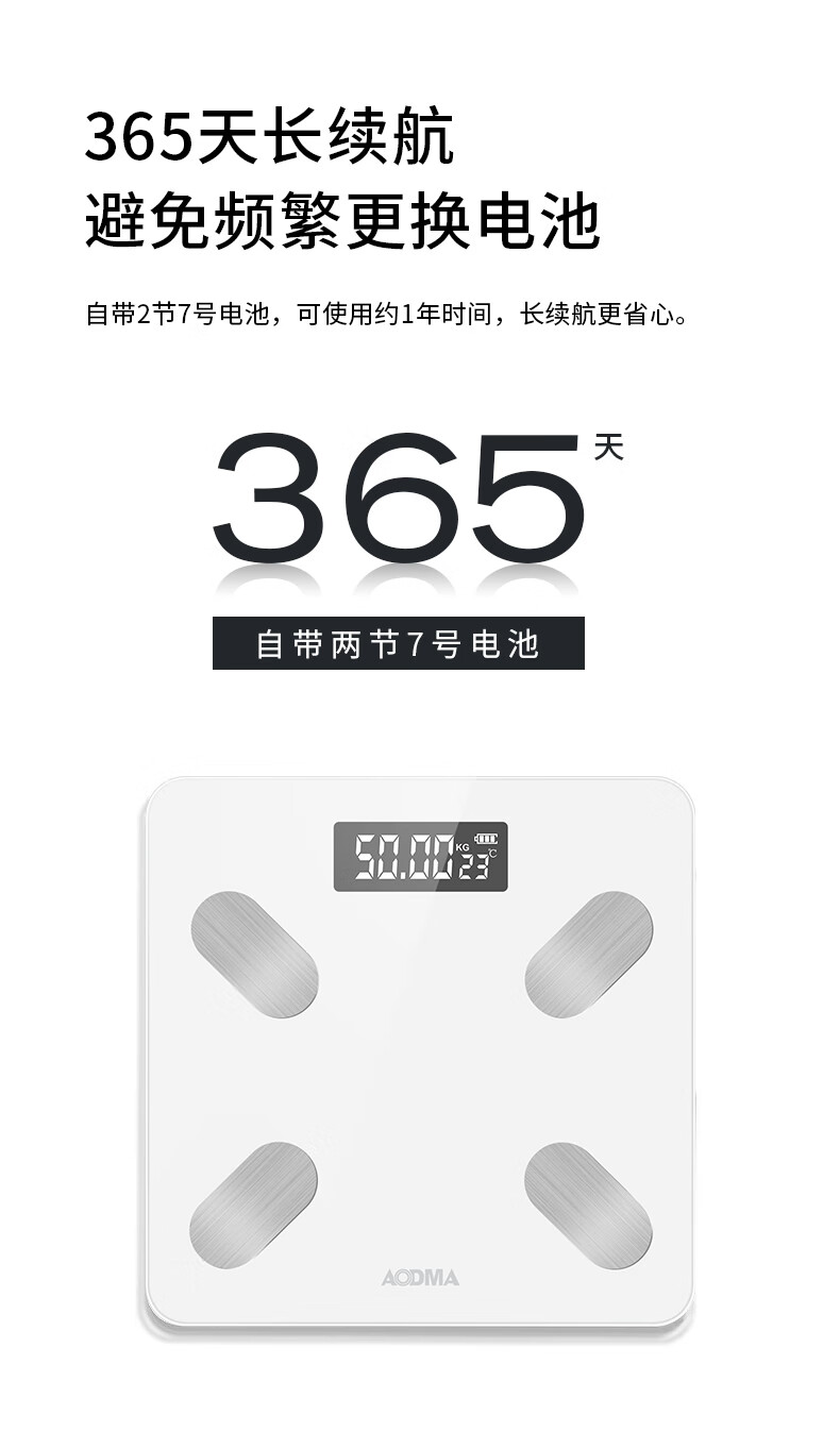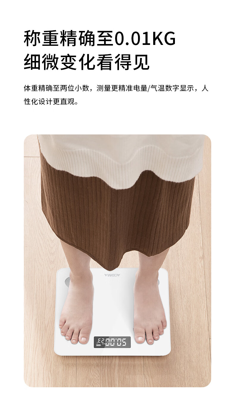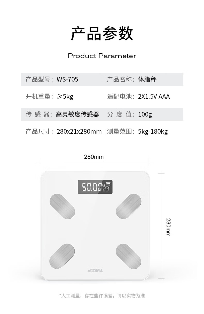 AODMA澳得迈 电子秤体重秤家用电池款人体秤称重减肥健康秤 WS-705白色