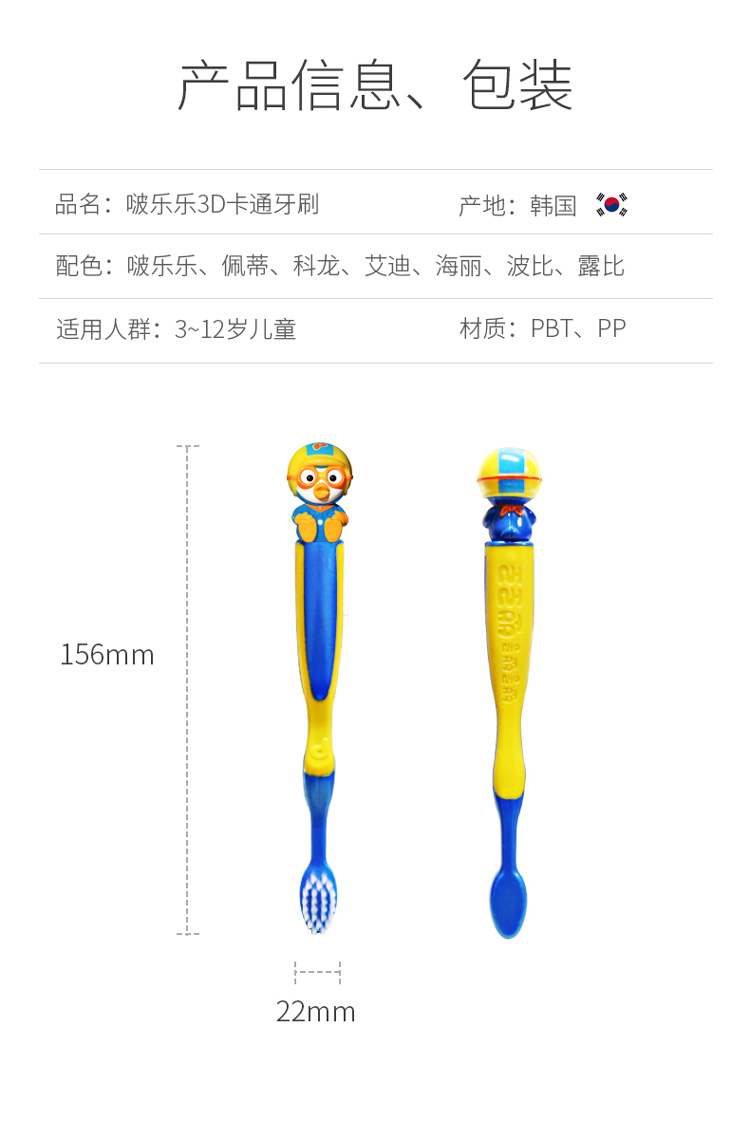 Pororo啵乐乐 儿童牙刷1支装 3岁以上