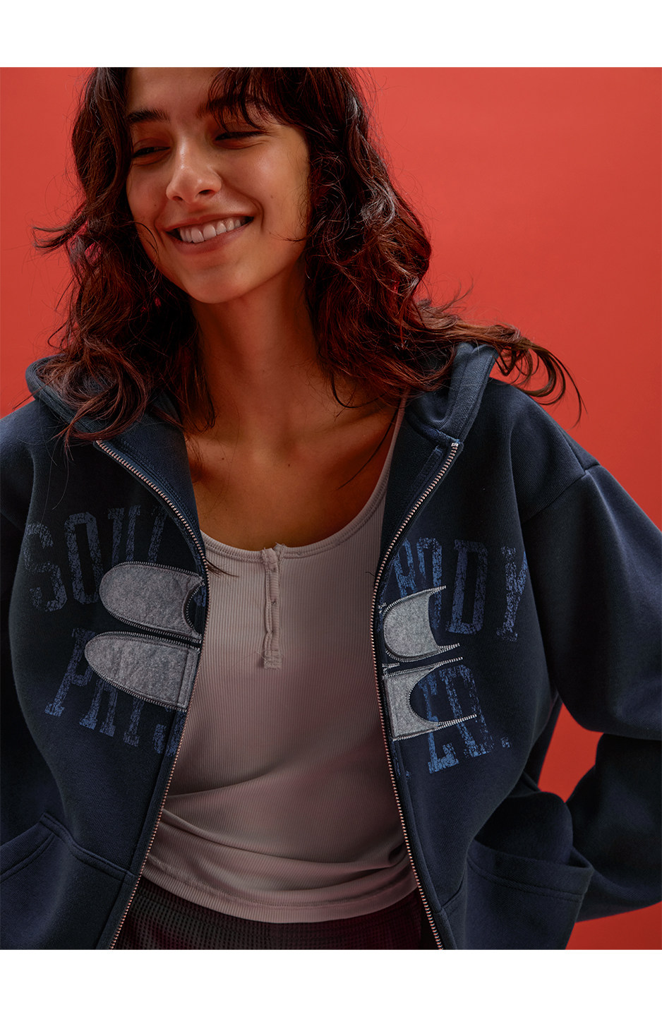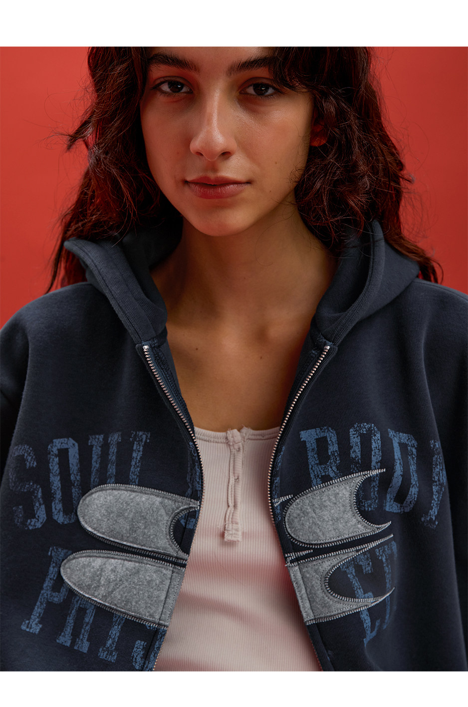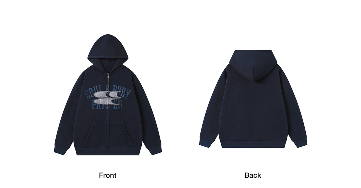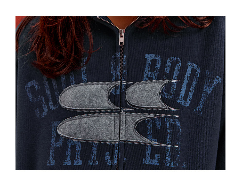 CryingCenter联名bofc 加绒毛毡SoulBody做旧复古拉链卫衣