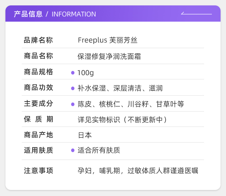 【保税仓】freeplus芙丽芳丝氨基酸洗面奶100g新版 (效期:2028/03)