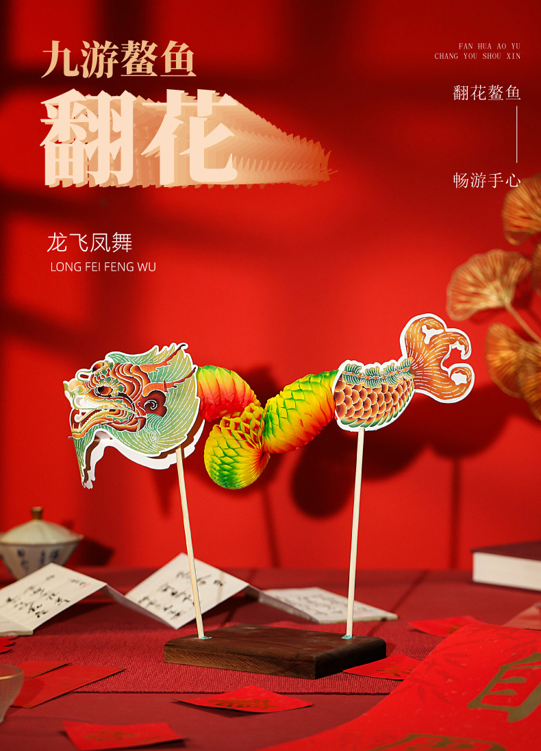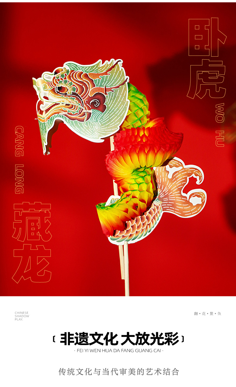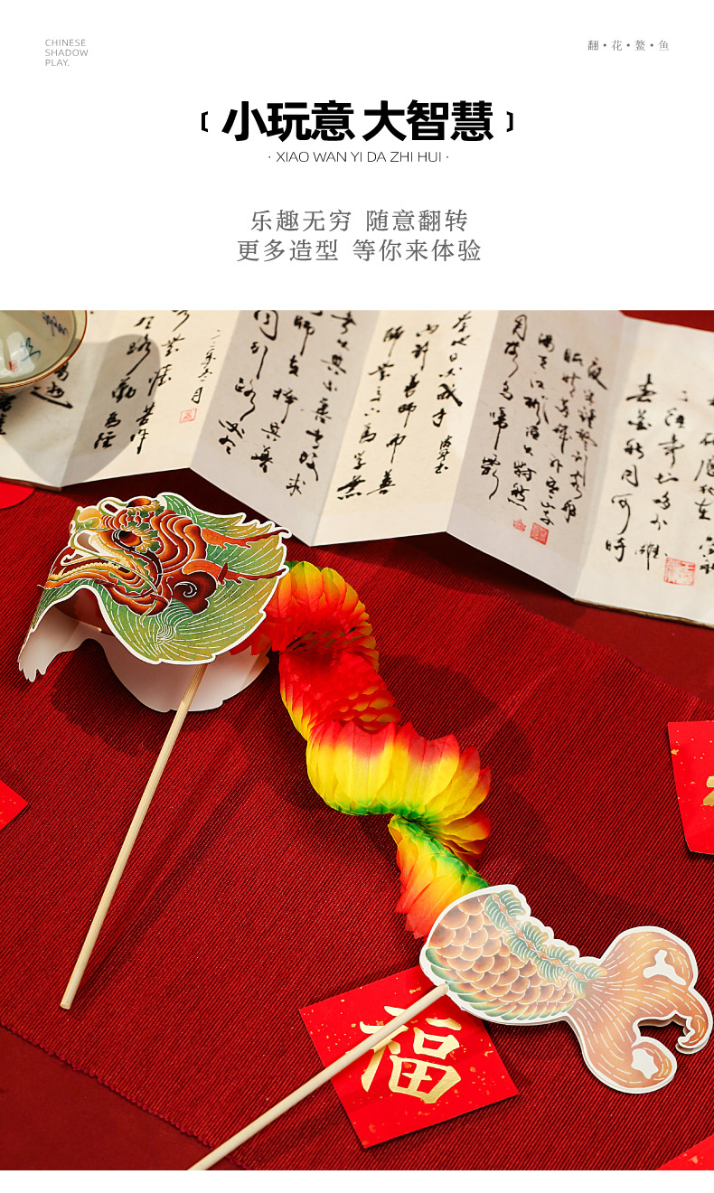 成都博物馆【民艺皮影九游鳌鱼纸翻花龙 】博物馆文创创意小玩具礼物