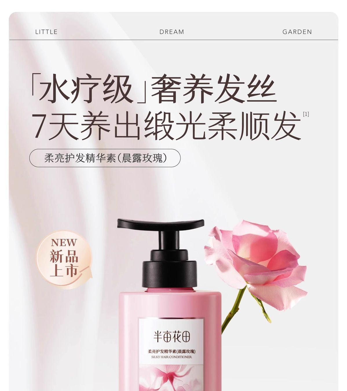 使用半亩花田自研珍稀成分 添加了被誉为花中黄金原液 含有丰富多糖蛋白的格拉斯玫瑰纯露+蓬松因子
