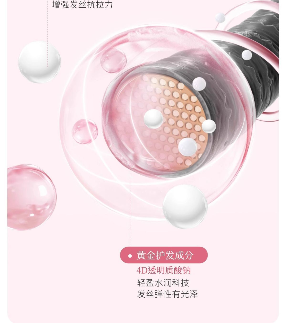 添加黄金护发成分 4D透明质酸钠,促进吸收令发丝变得弹性有光泽~