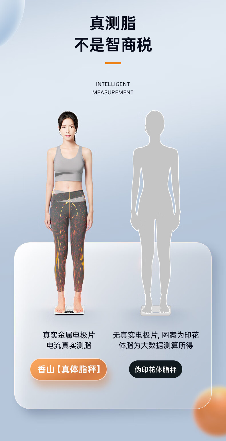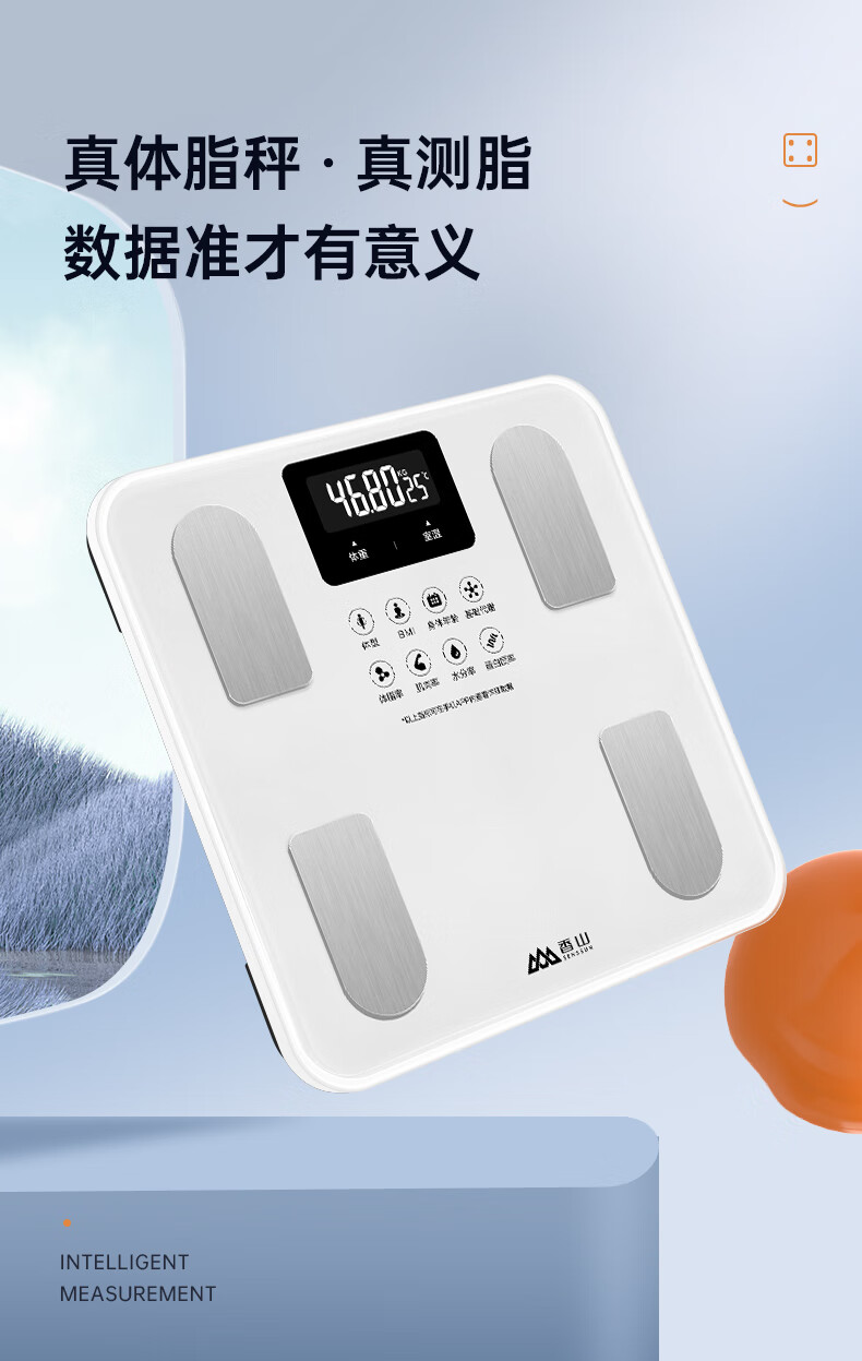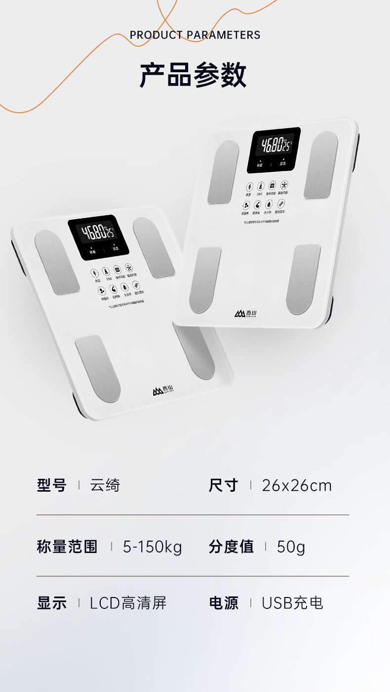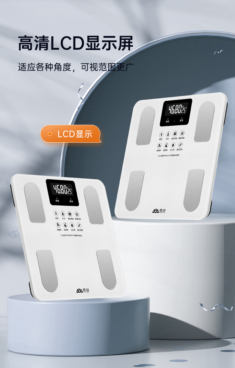 积分免费兑:香山体脂秤 真电极智能称体重秤电子秤人体秤家用减肥 22项数据 LCD显示屏【Type-C充电款】