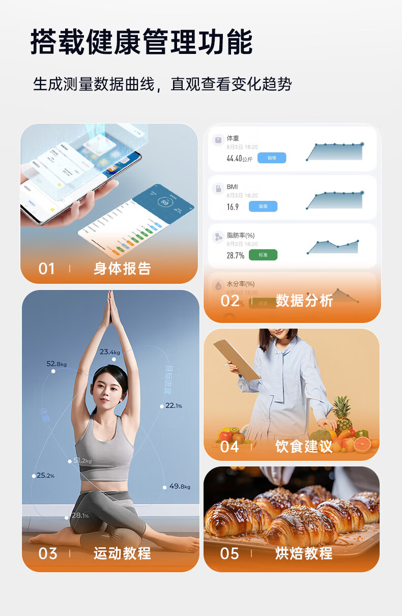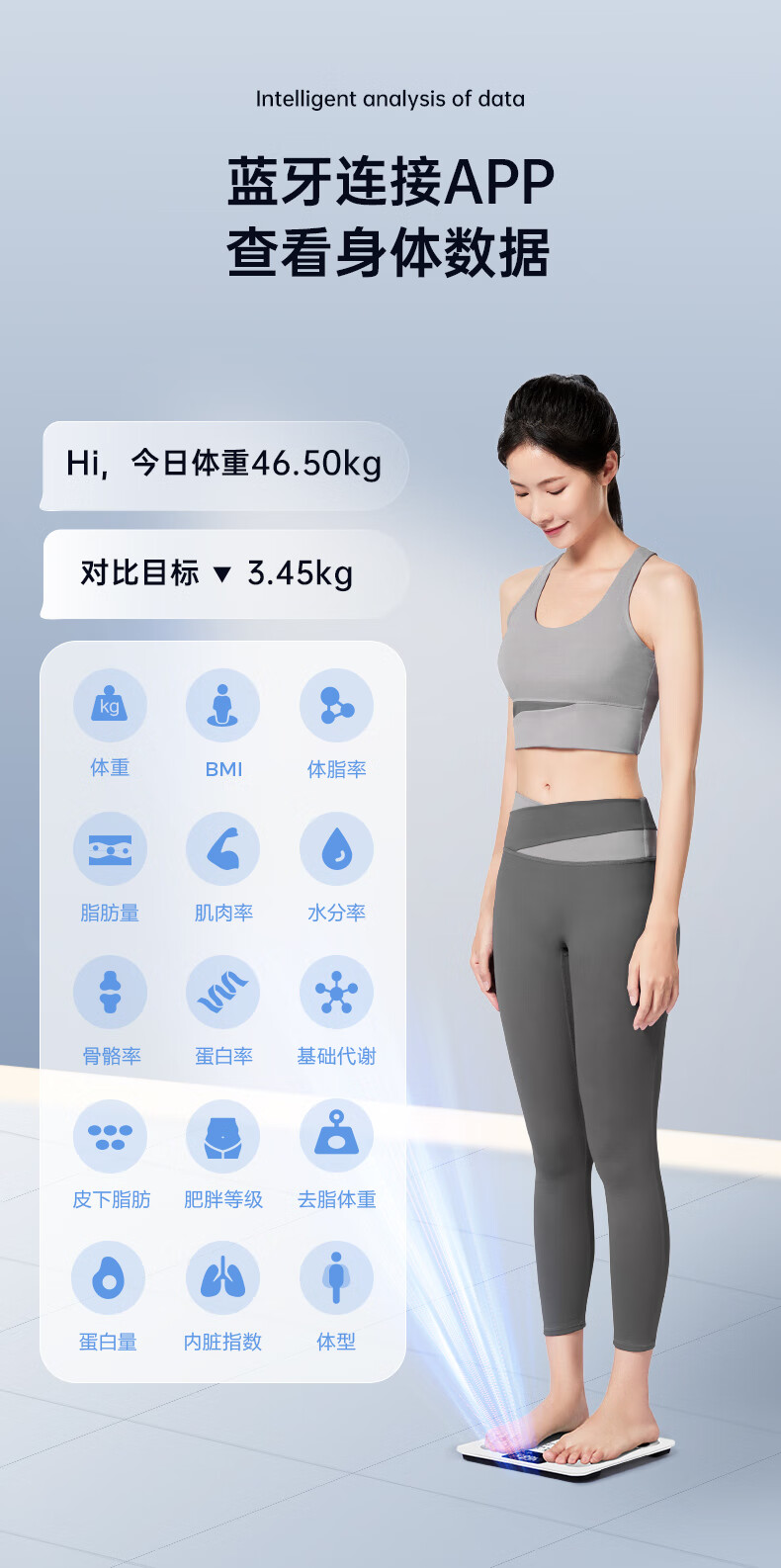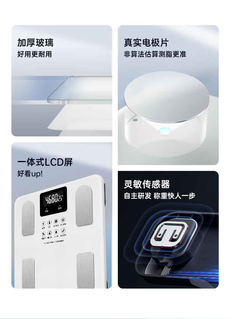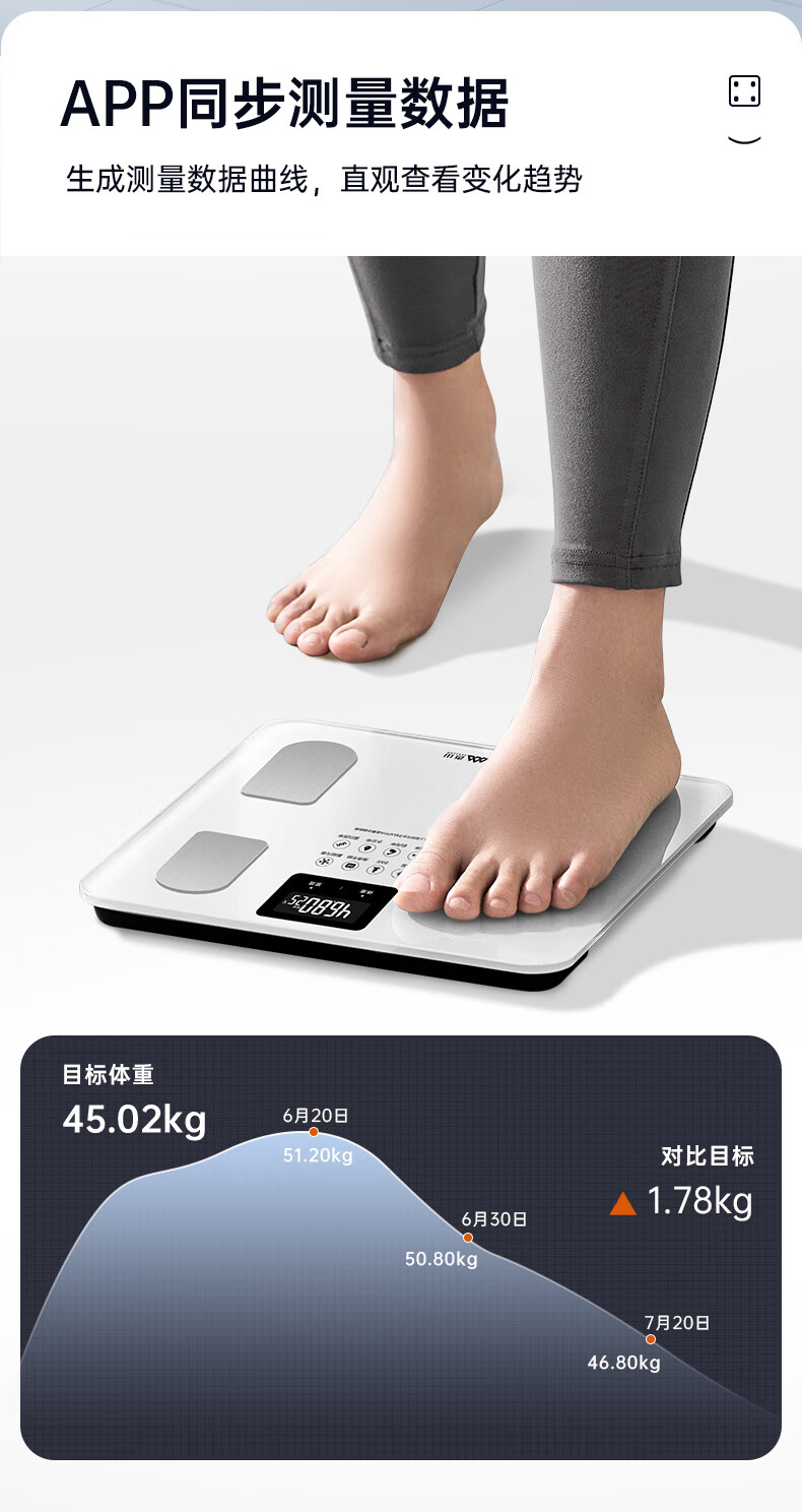 积分免费兑:香山体脂秤 真电极智能称体重秤电子秤人体秤家用减肥 22项数据 LCD显示屏【Type-C充电款】
