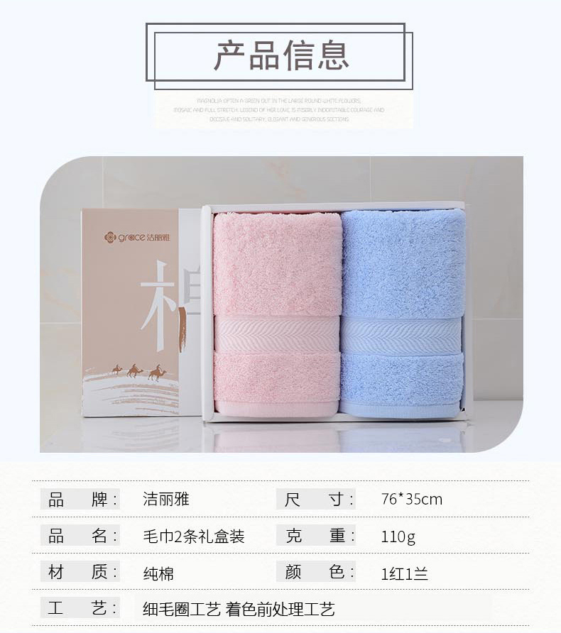 洁丽雅 纯棉毛巾2条套礼盒装(配礼袋)6732