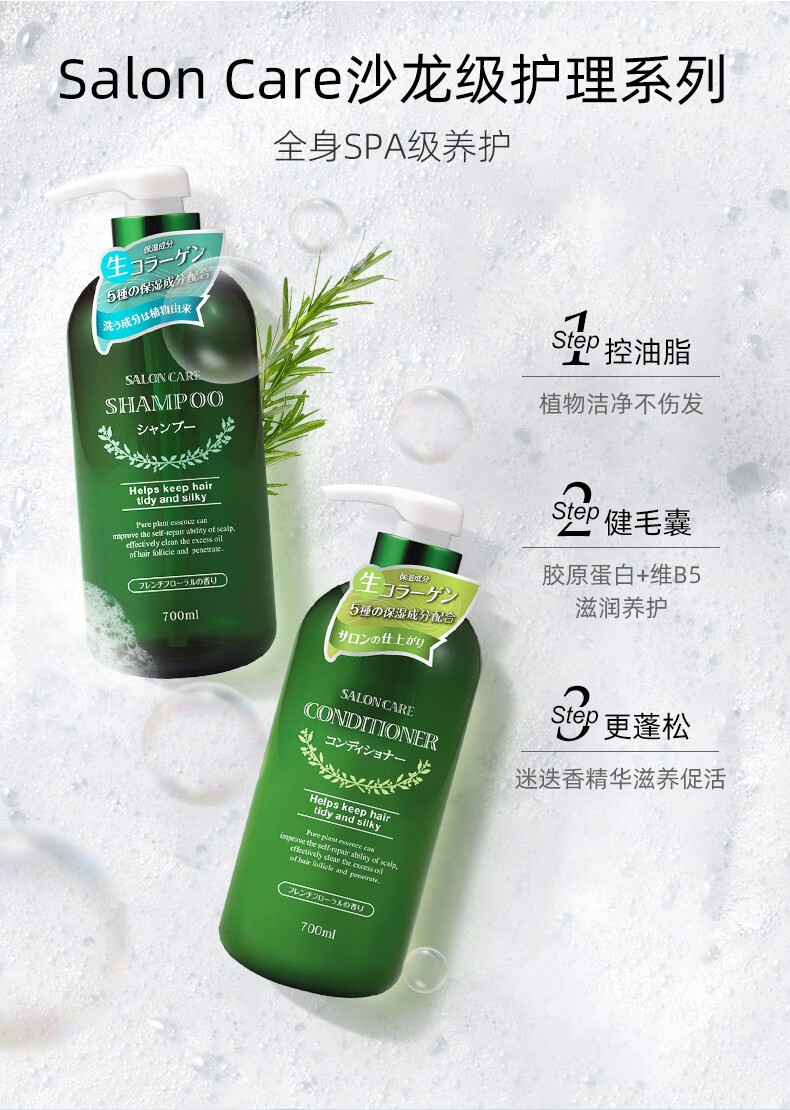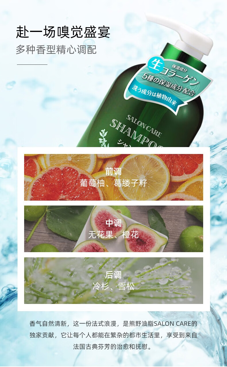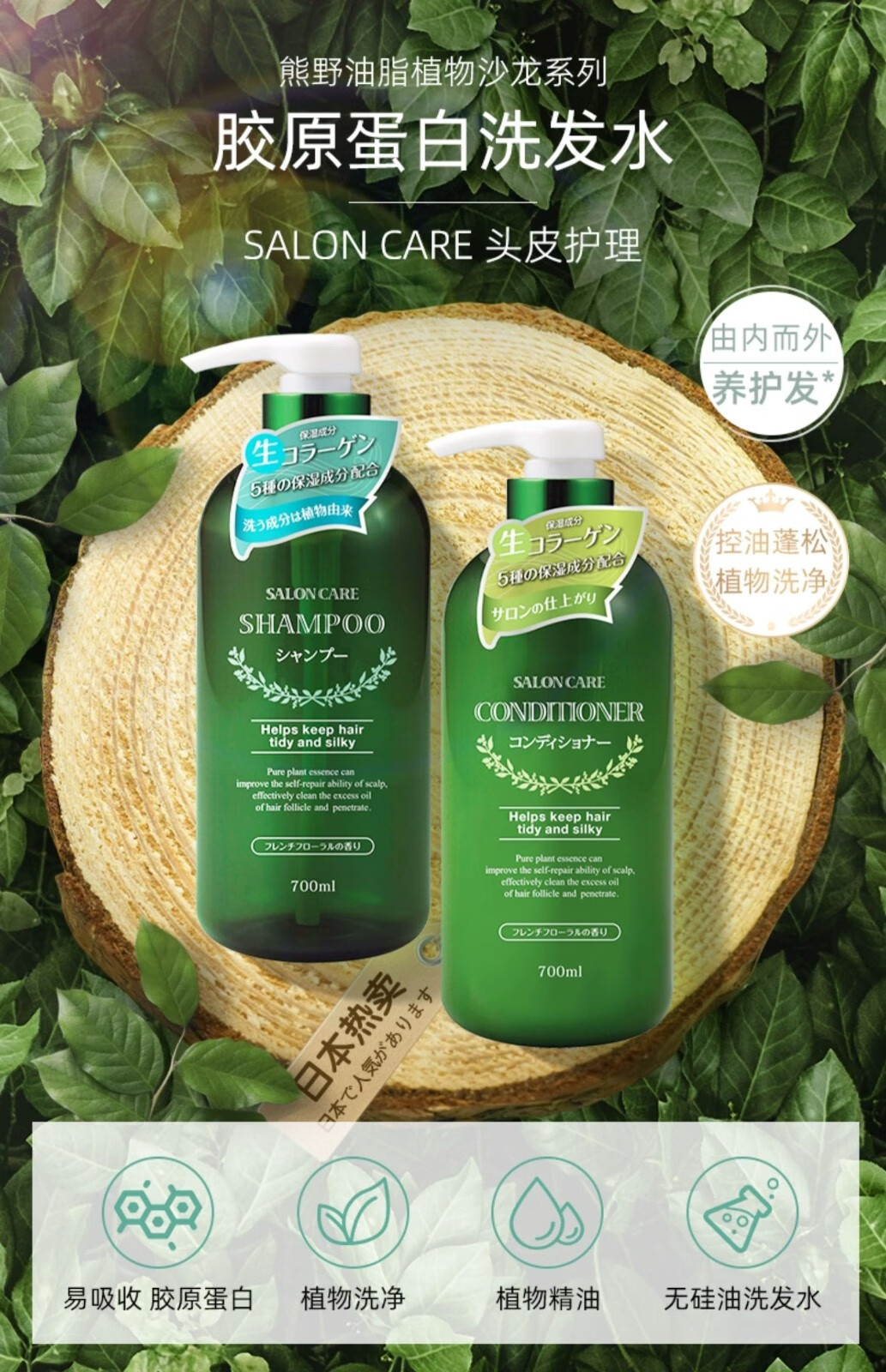熊野油脂日本原装进口saloncare植物沙龙无硅油洗发水/护发素沐浴露 700ml/瓶