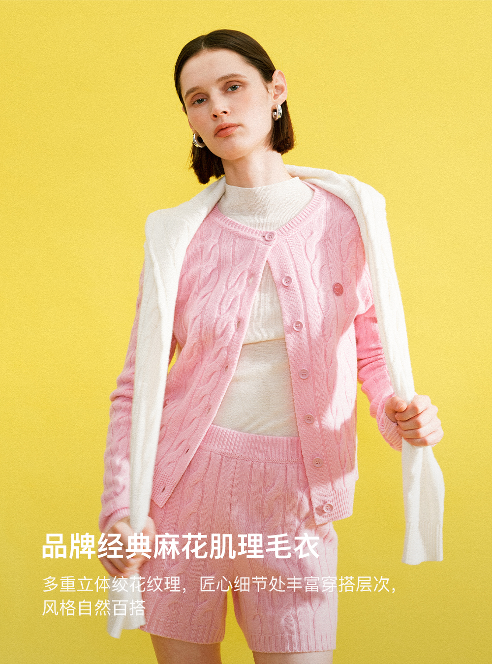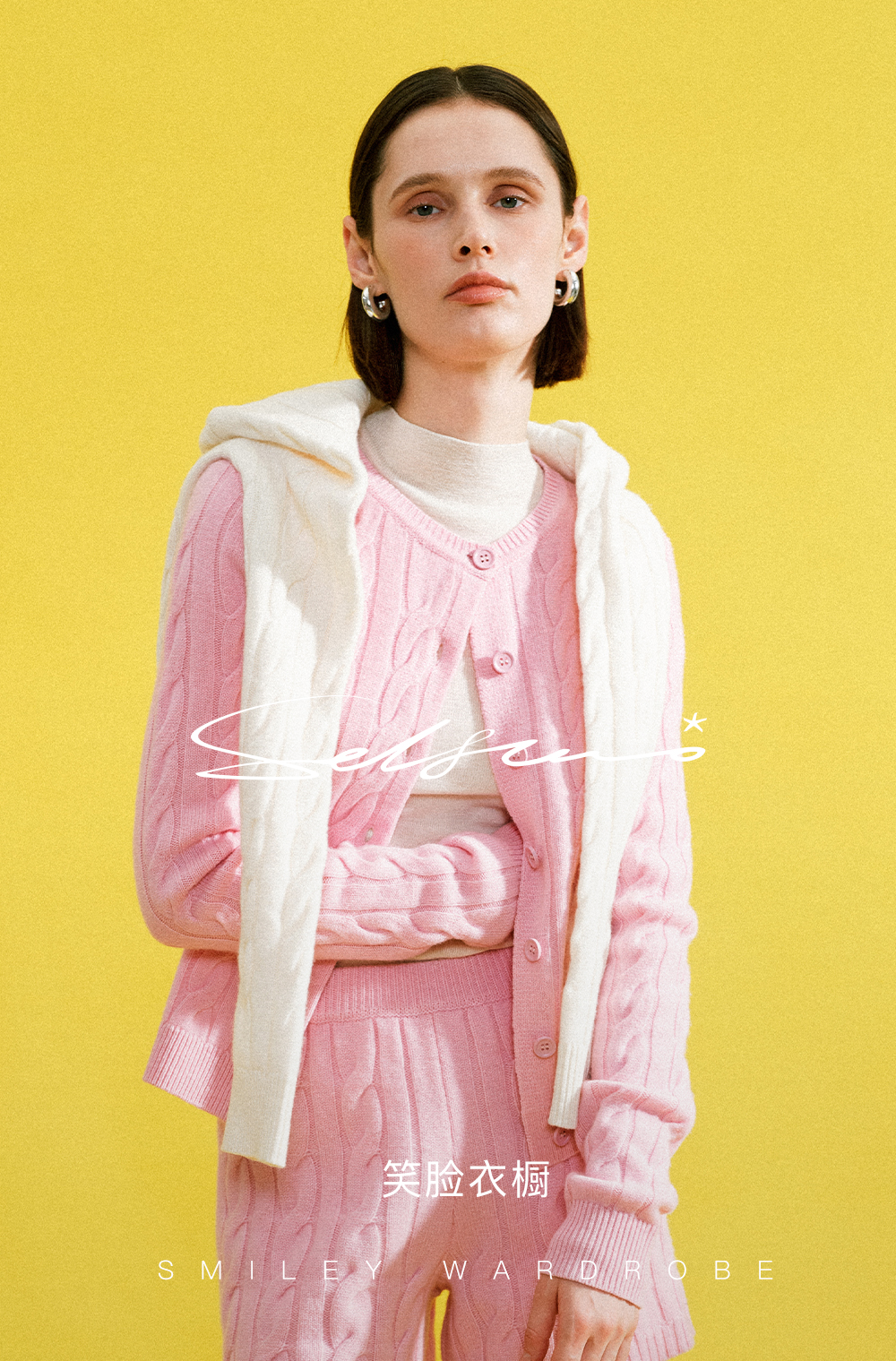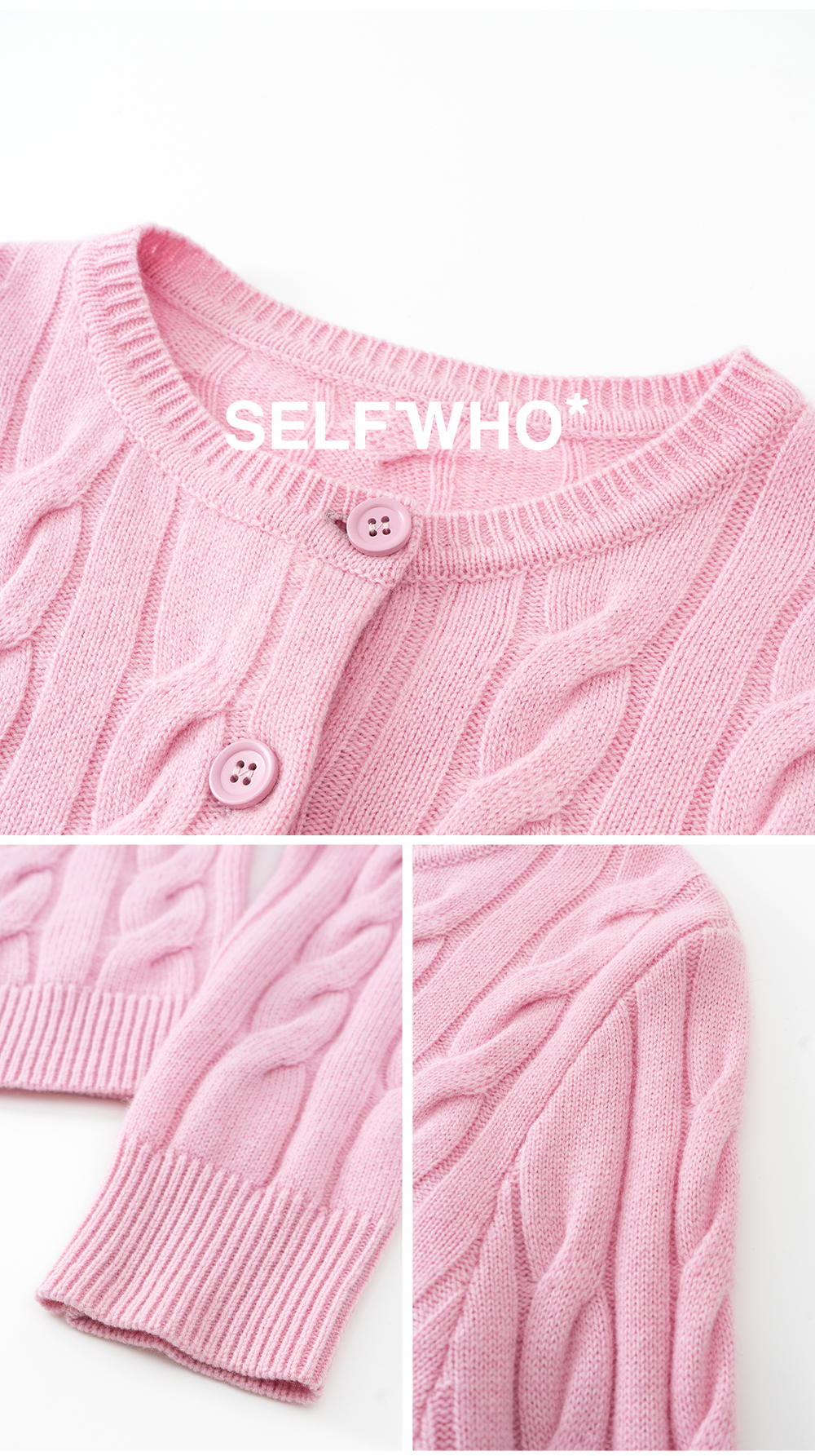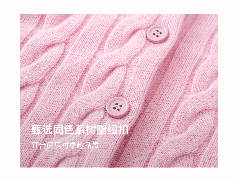 SELFWHO100%绵羊毛经典麻花肌理毛衣女2025冬季新款针织开衫外套