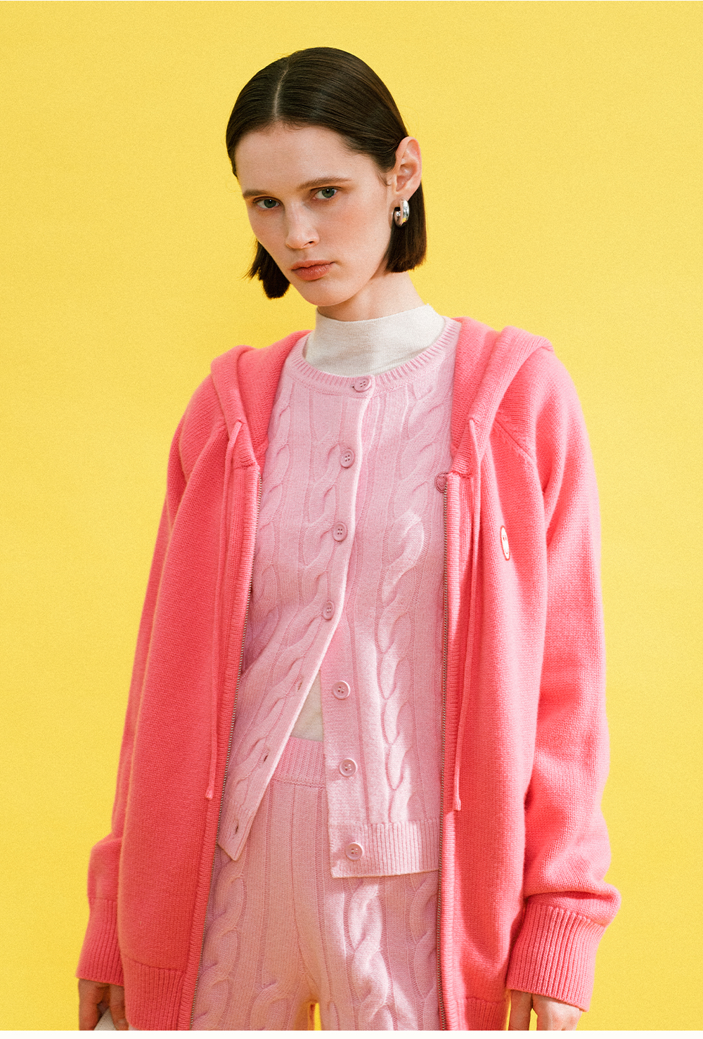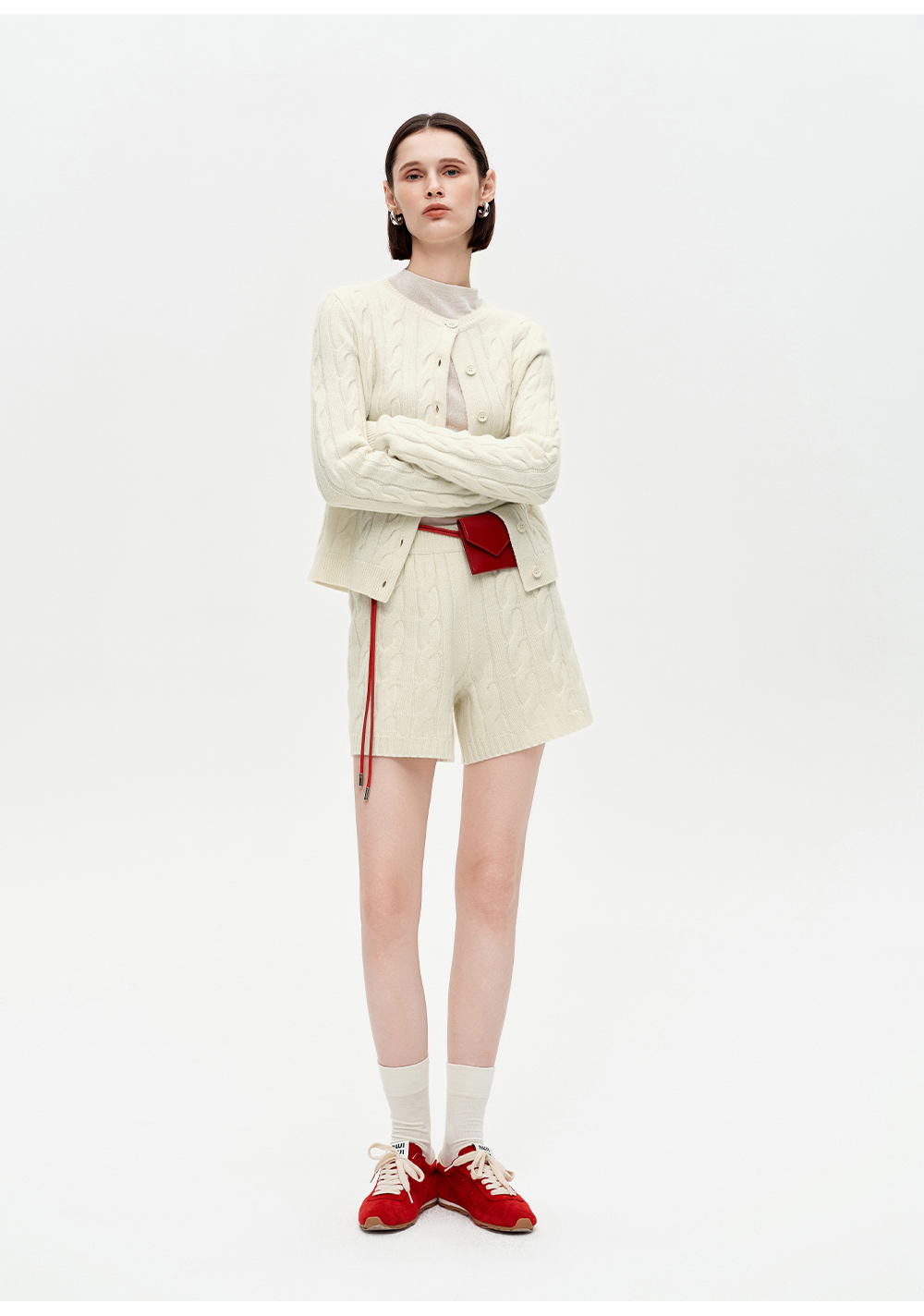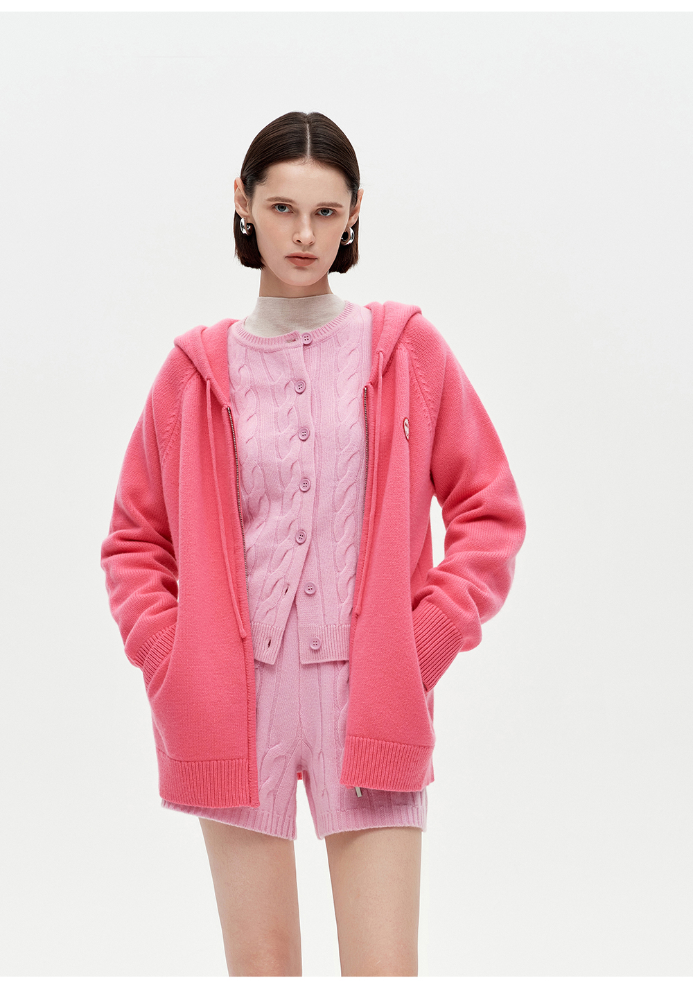 SELFWHO100%绵羊毛经典麻花肌理毛衣女2025冬季新款针织开衫外套