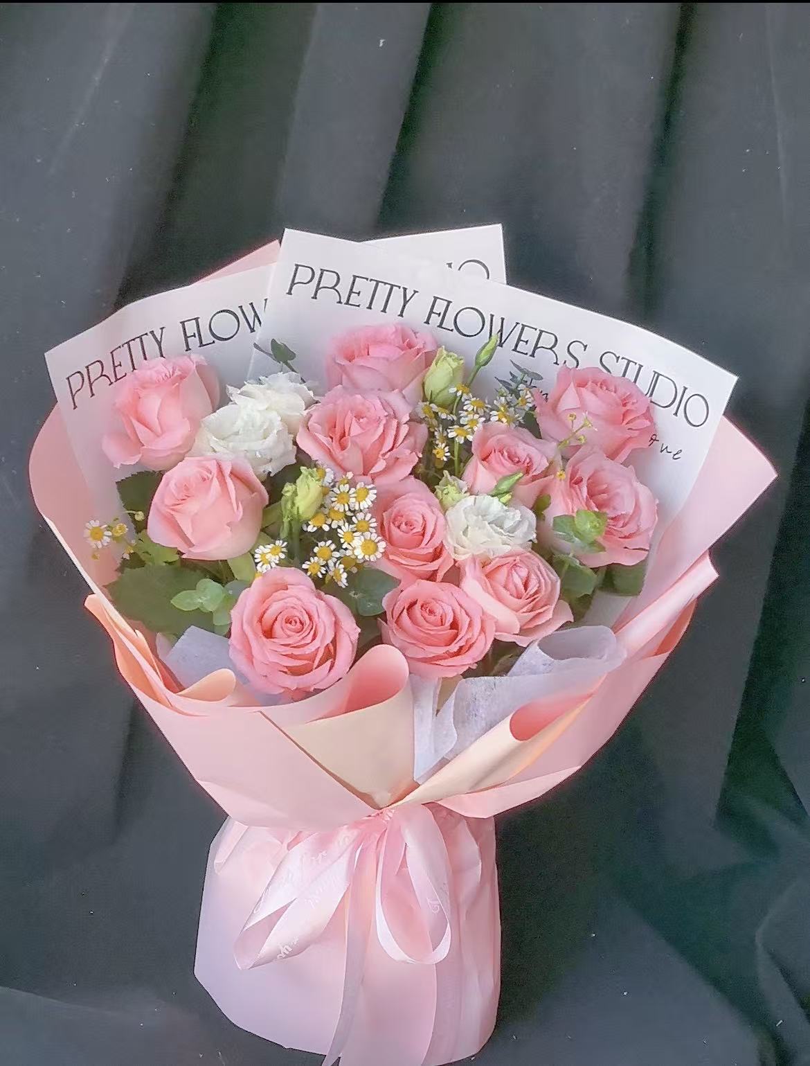 【当日达】顺丰免邮◆戴安娜玫瑰 洋甘菊 白桔梗 尤加利叶 幸福与欢乐 手捧花