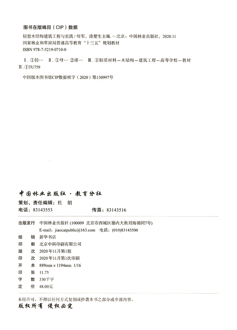 轻型木结构建筑工程与实践(国家林业和草原局普通高等教育十三五规划教材) 母军,漆楚生,杜娟 0710 中国林业出版社