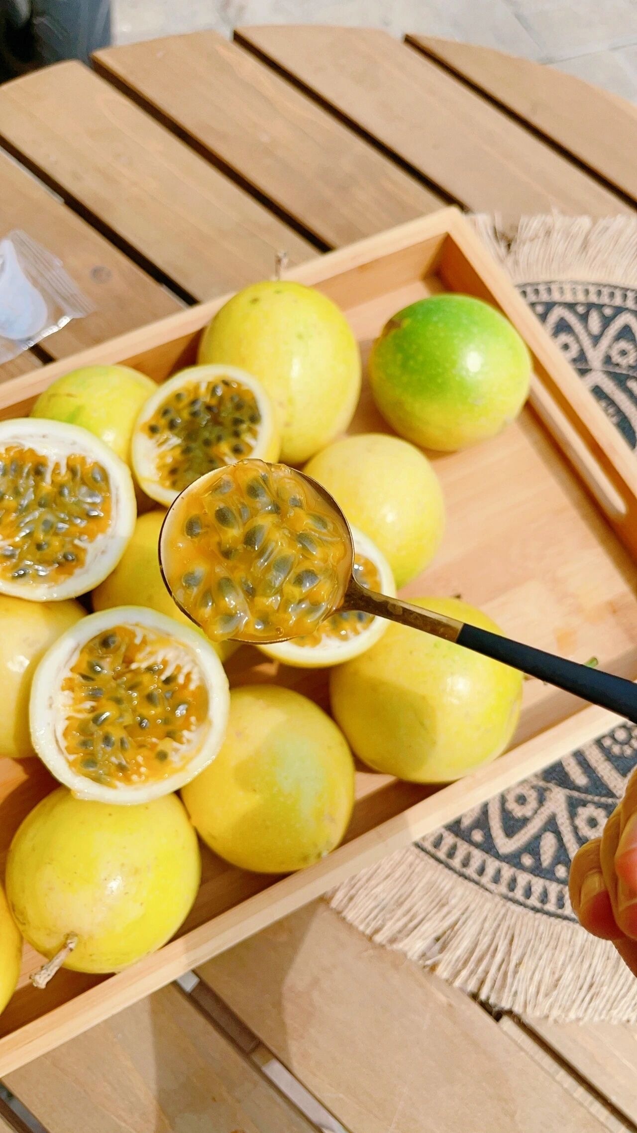 5.皱皮的百香果不是坏的,是成熟的表现,越皱皮越香甜,不成熟的百香果,果然显白色哦。