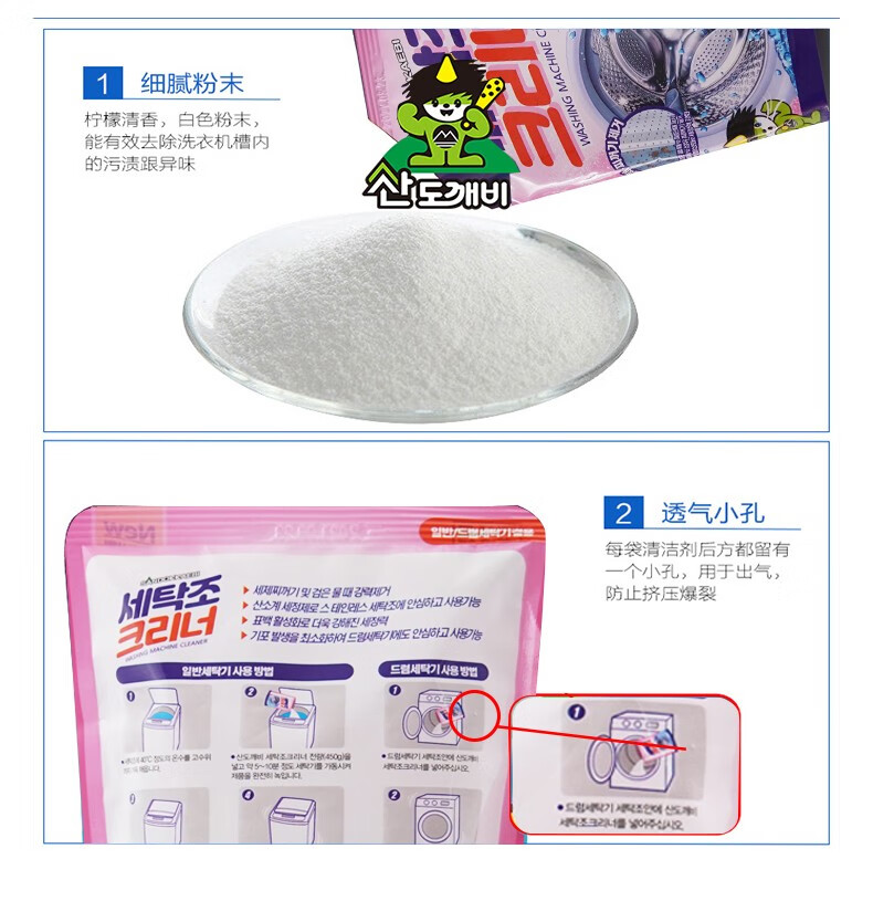 韩国山小怪(山鬼)洗衣机清洗粉清洁剂 450g/袋