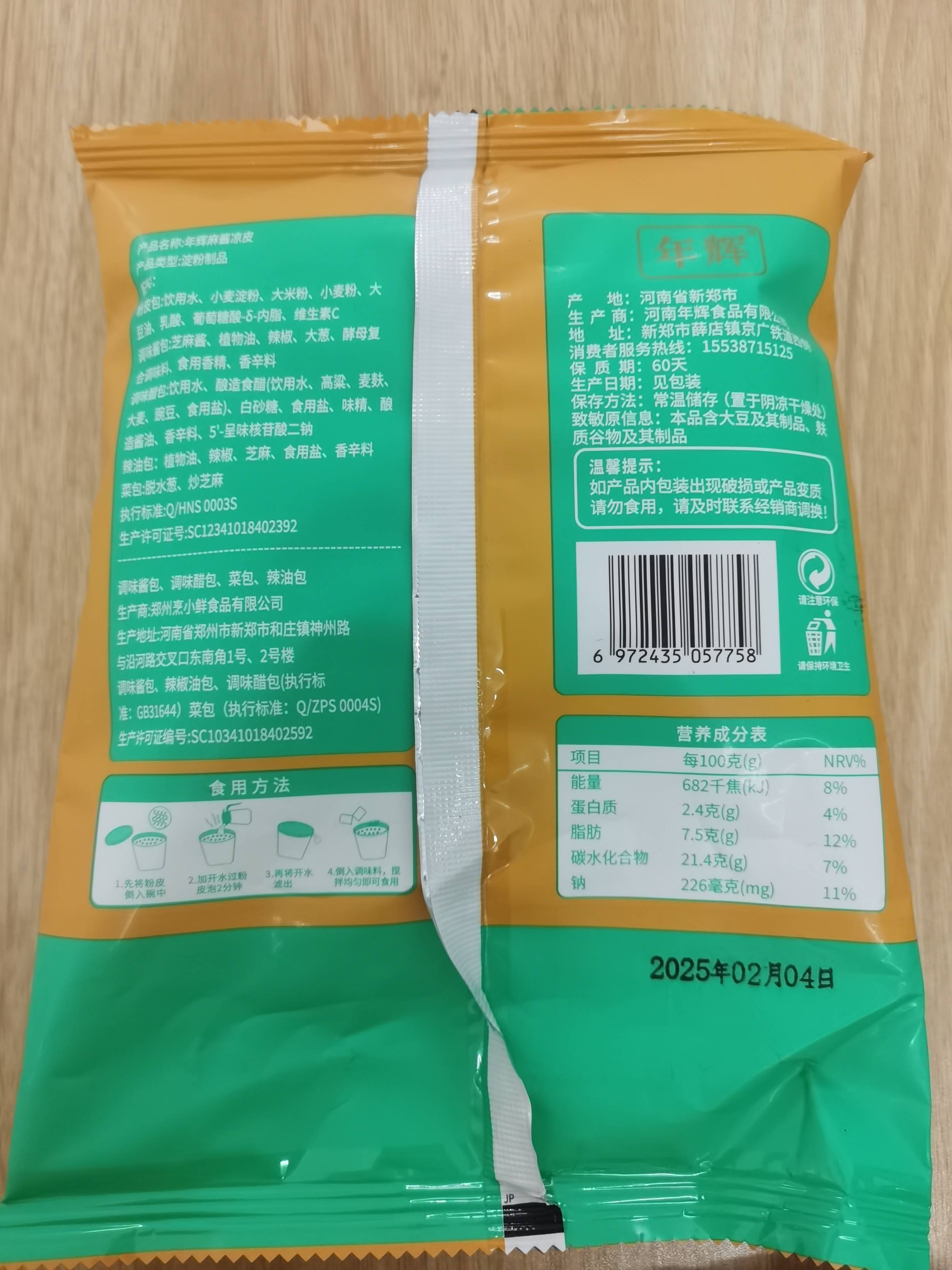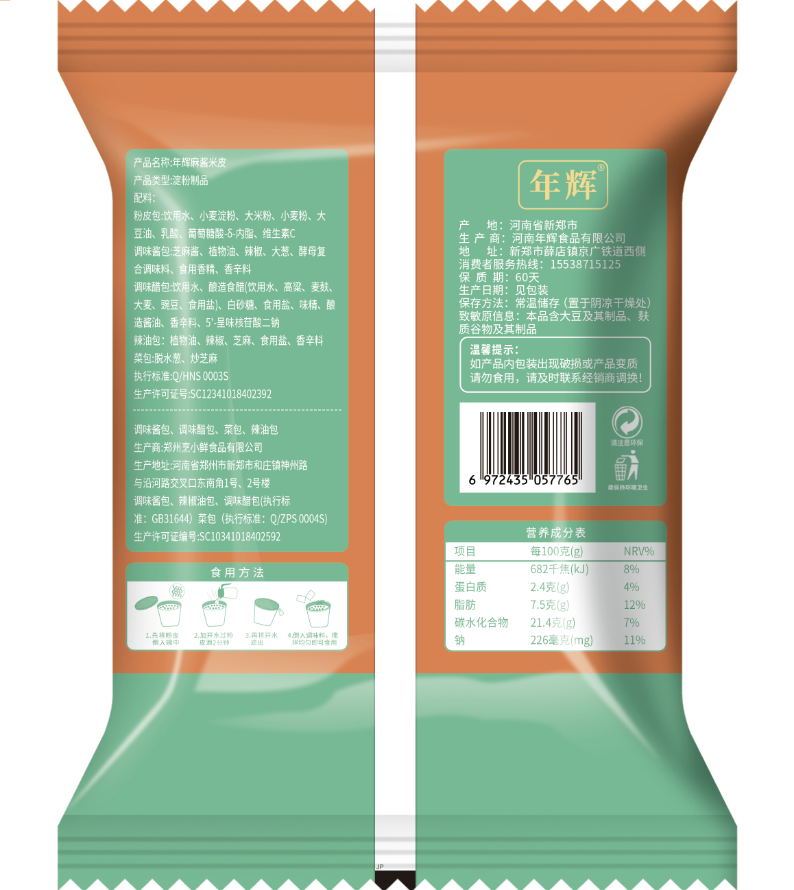 麻酱味(内含醋包、凉皮包/米皮包、辣油包、麻酱包、菜包)
