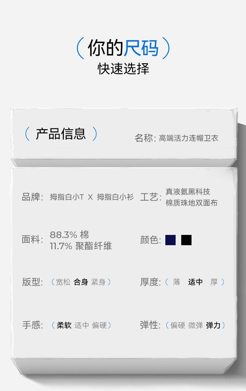 拇指白小衫高端活力连帽卫衣至简品质系列