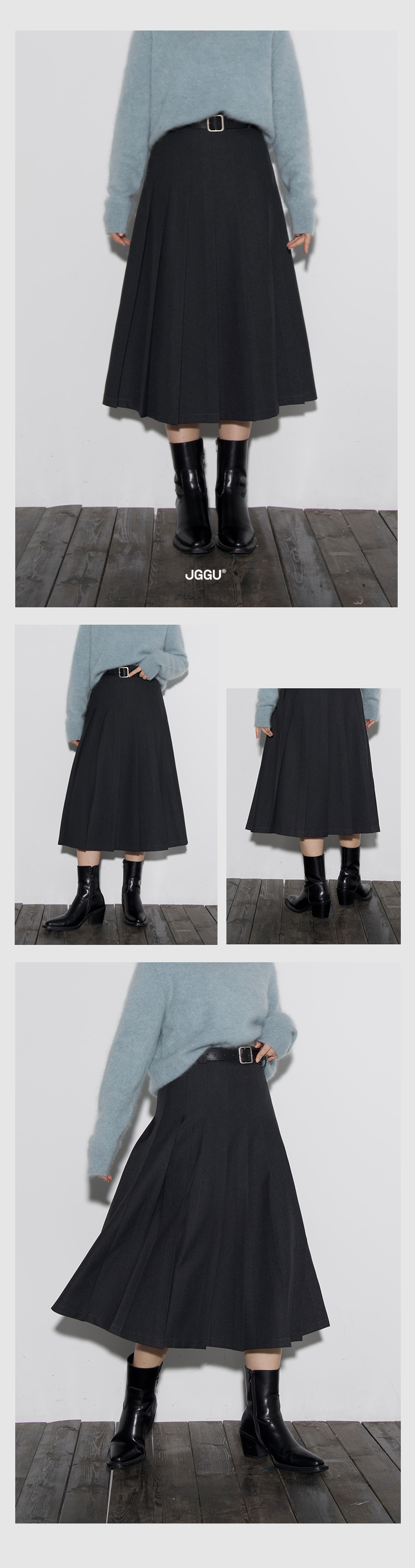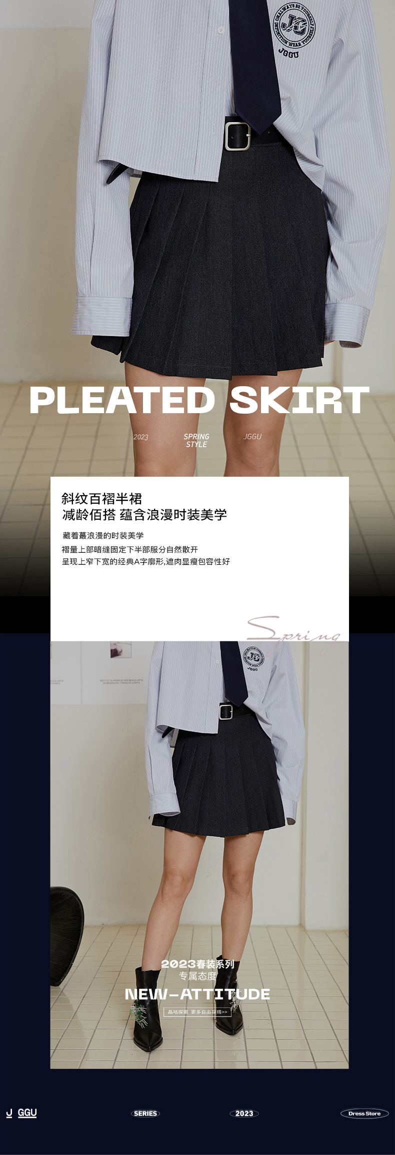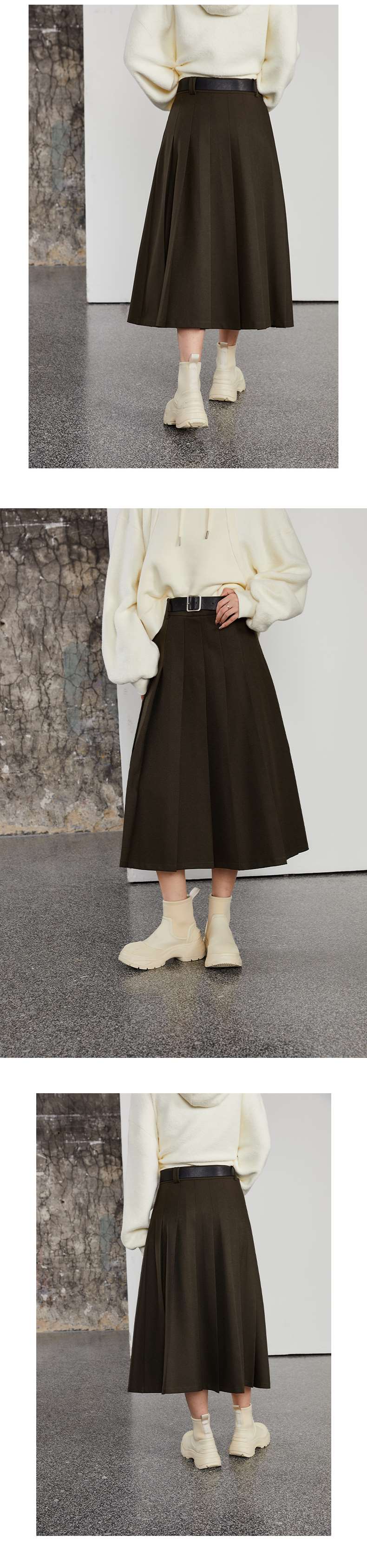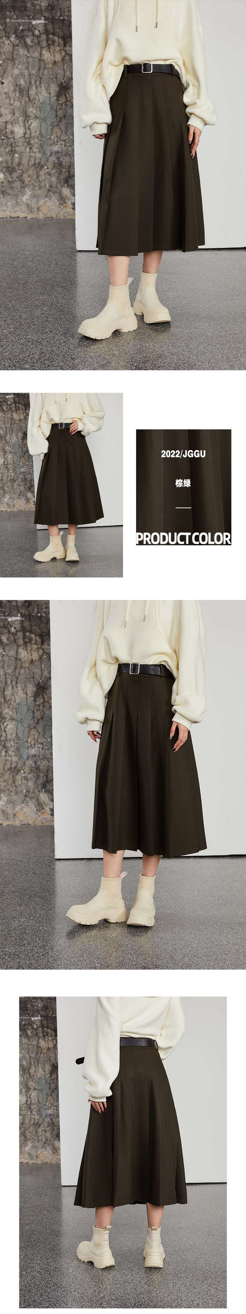 晶咕黑标女装 腰带百褶半身裙女春季2023年宽松气质长短款a字裙