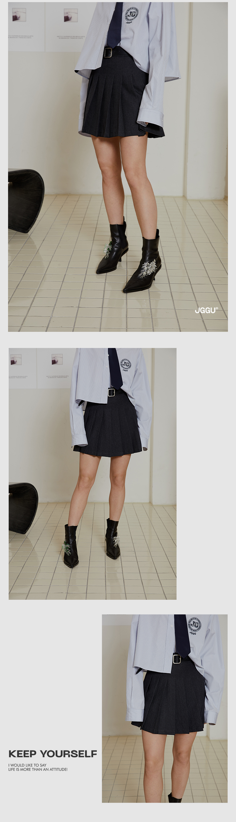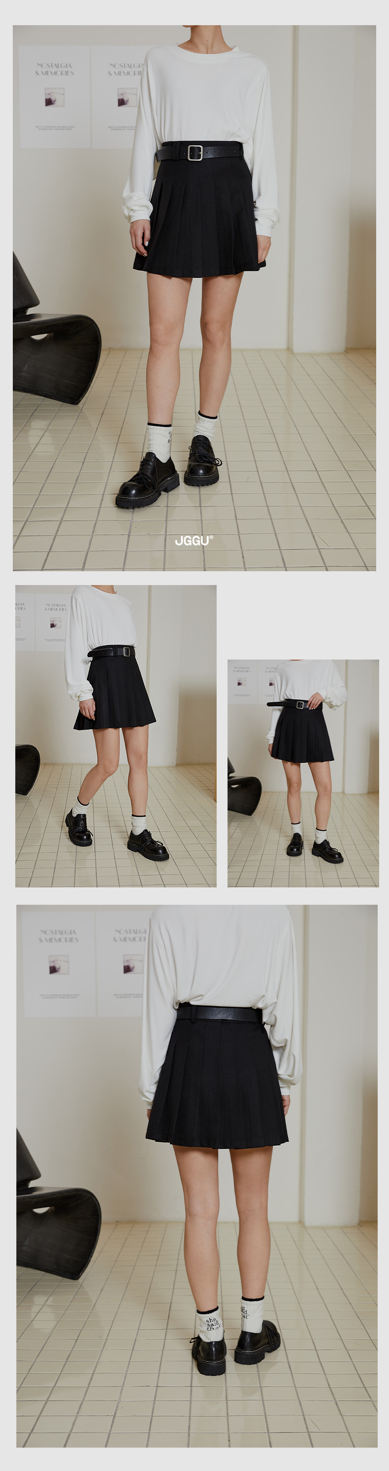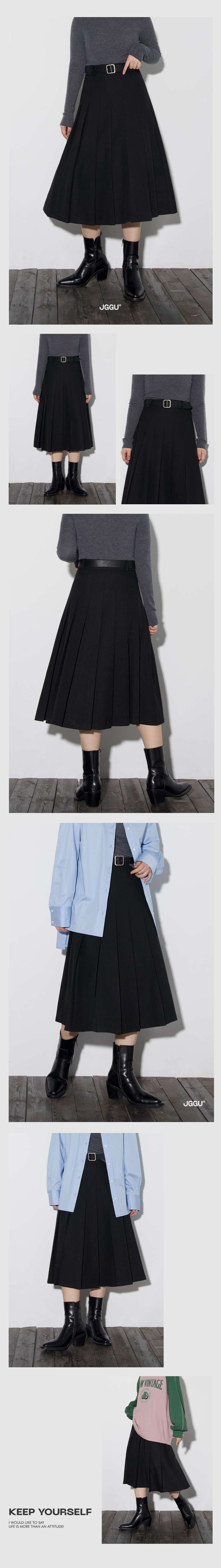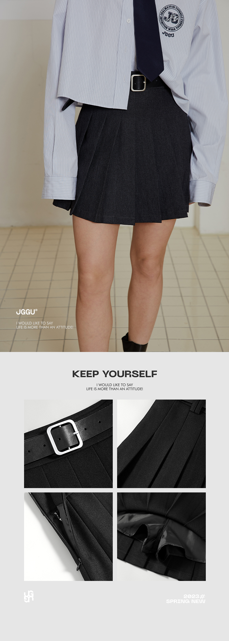 晶咕黑标女装 腰带百褶半身裙女春季2023年宽松气质长短款a字裙