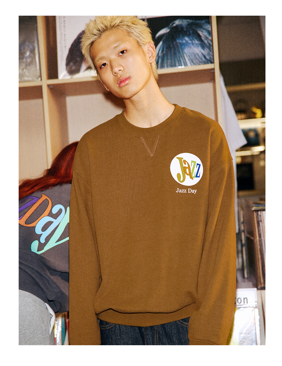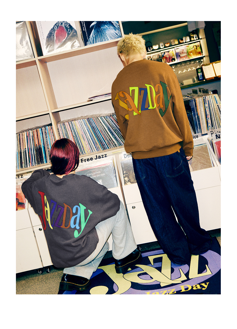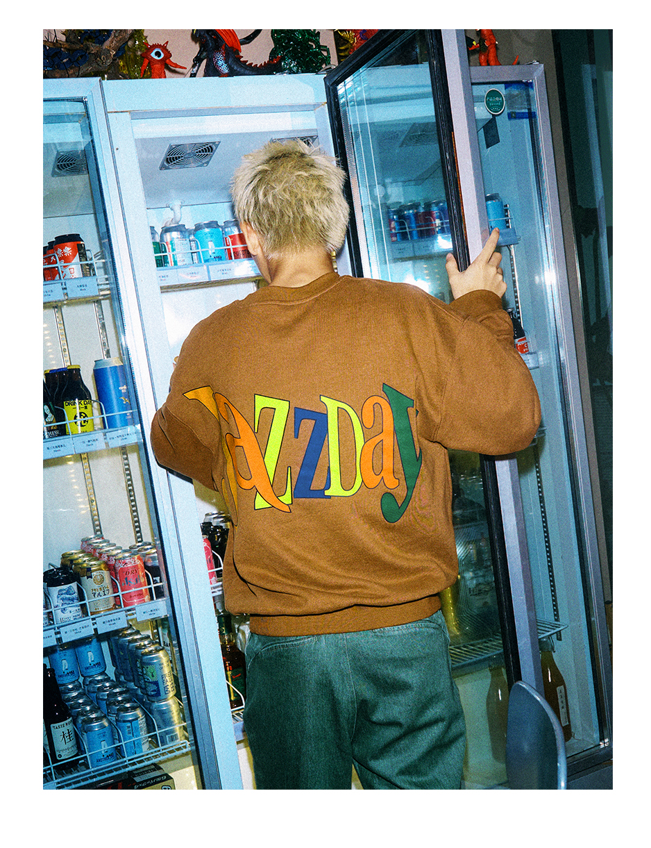 CryingCenter JazzDay水洗复古字母彩色印花软糯加绒圆领宽松卫衣
