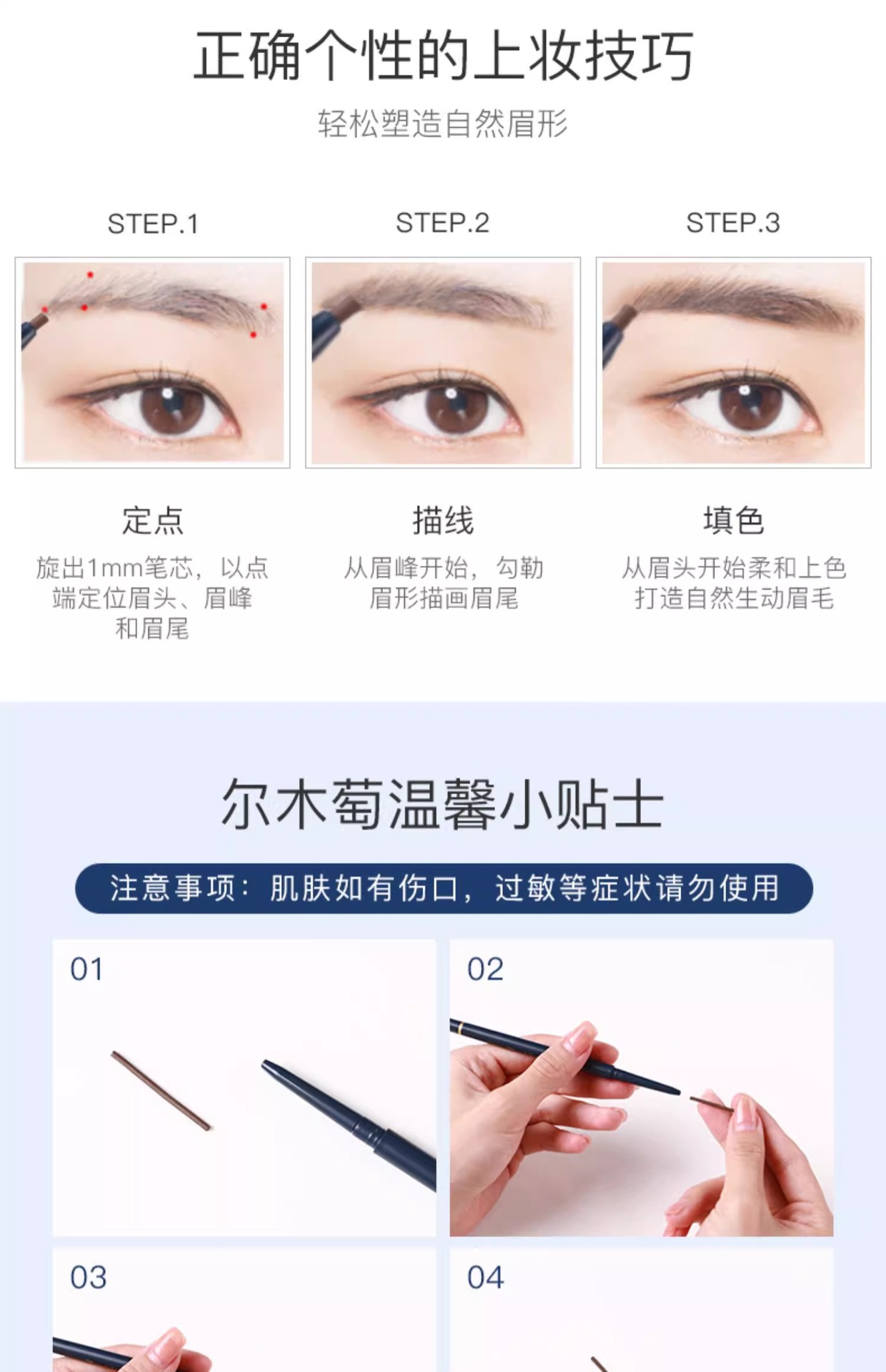 尔木萄极细眉笔超细头防汗防水持妆易上色不易脱色女染眉膏 心选到家
