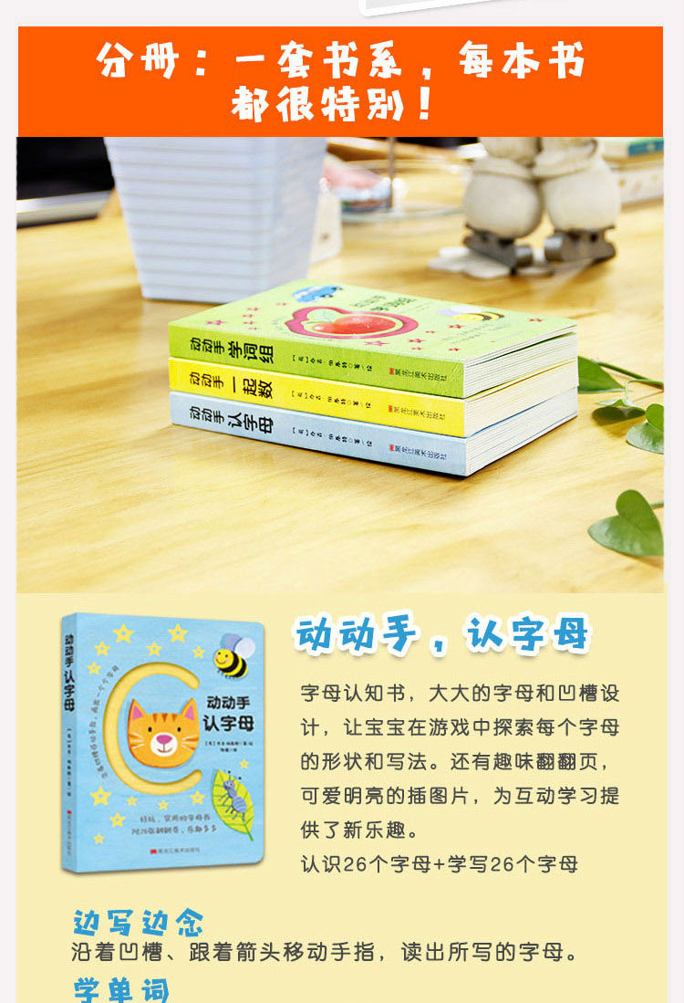 【童立方】宝宝手指活动书(全3册)0-3周岁翻翻纸板书宝宝启蒙认知图画绘本
