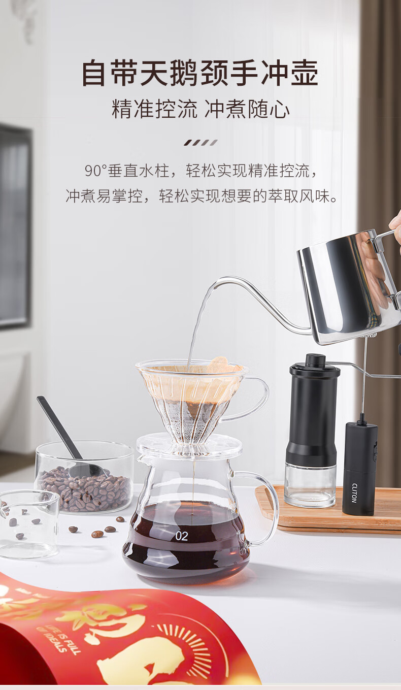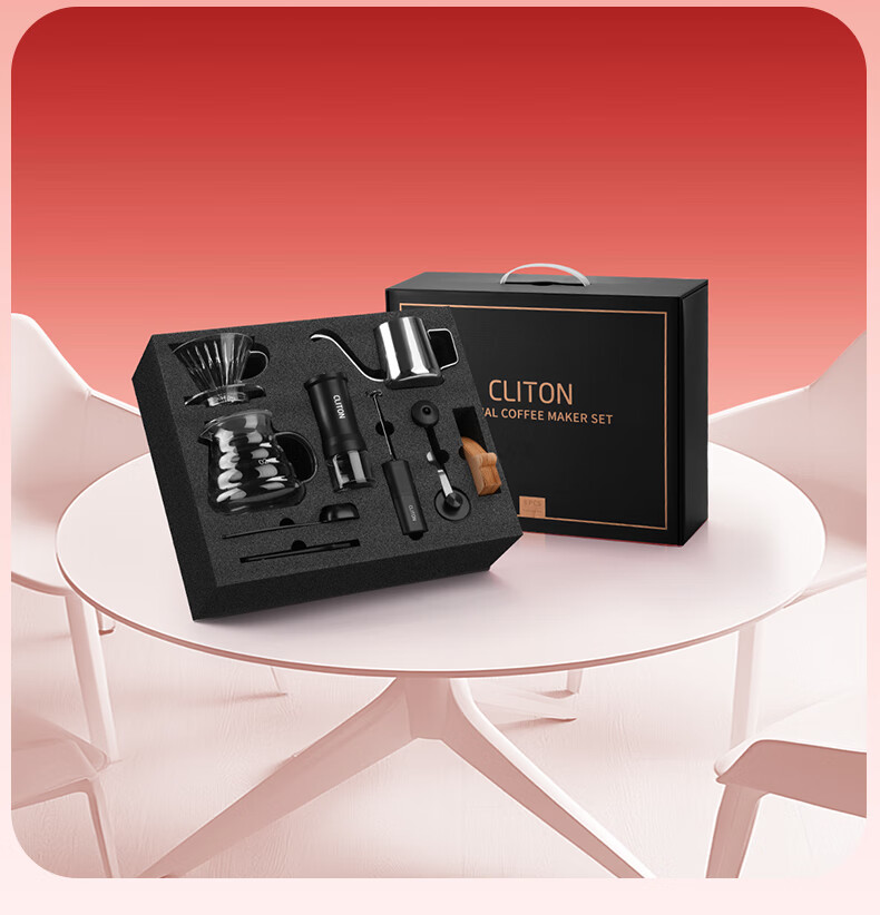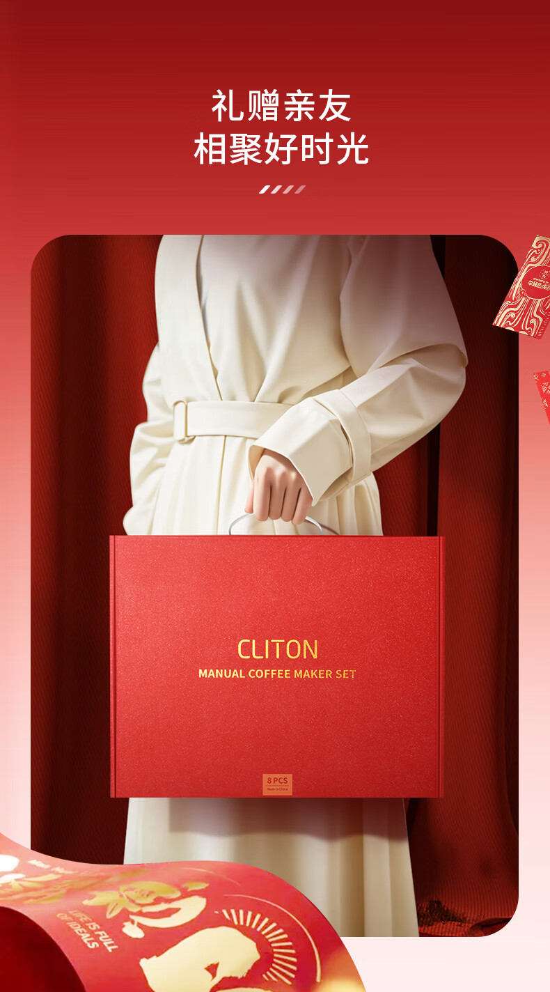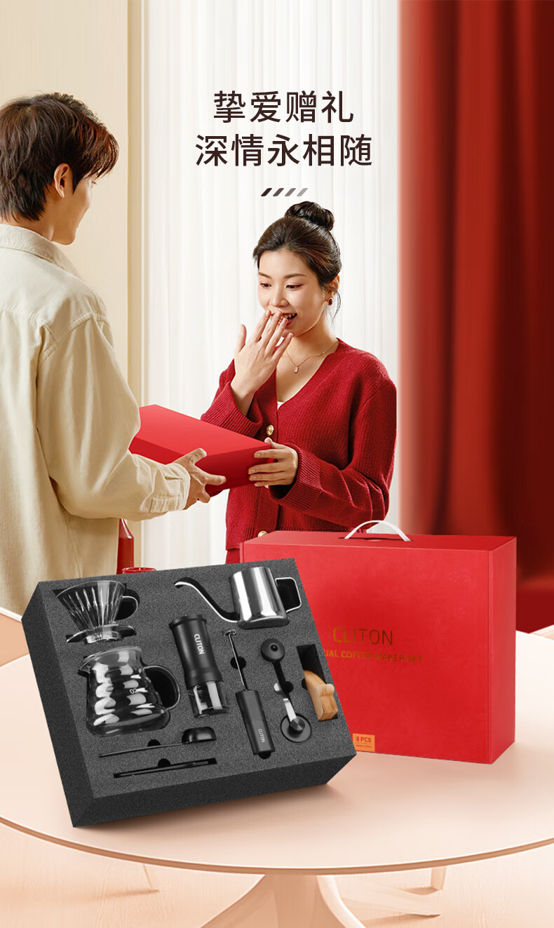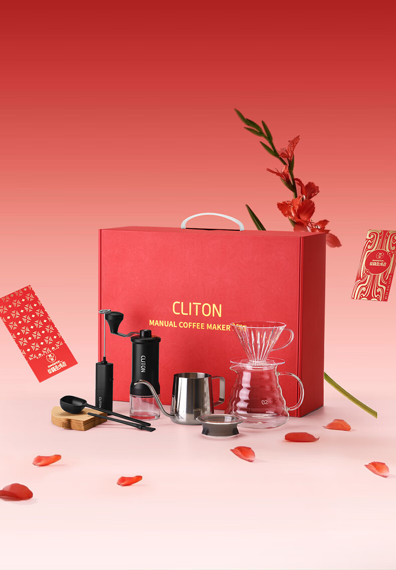 积分免费兑:CLITON手摇磨豆机咖啡豆研磨机手磨咖啡机咖啡壶滤杯手冲壶新年礼盒套装