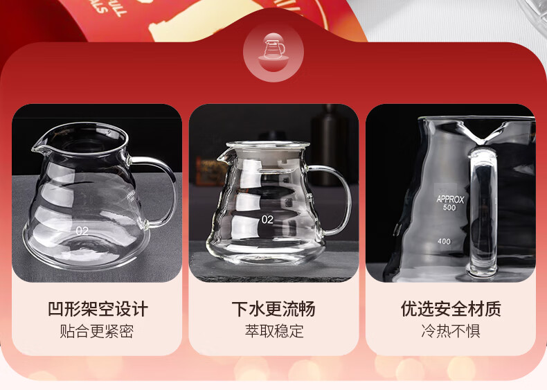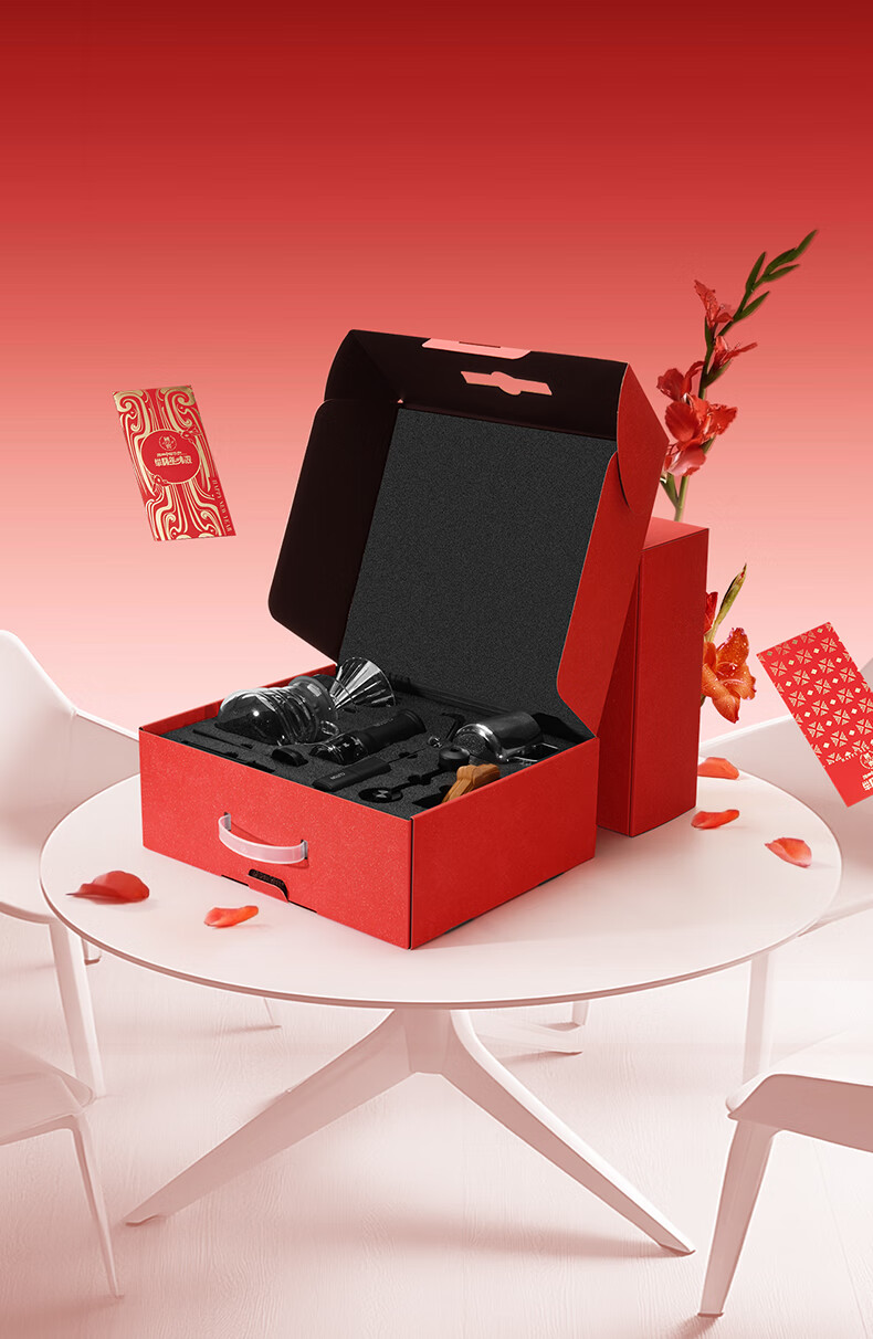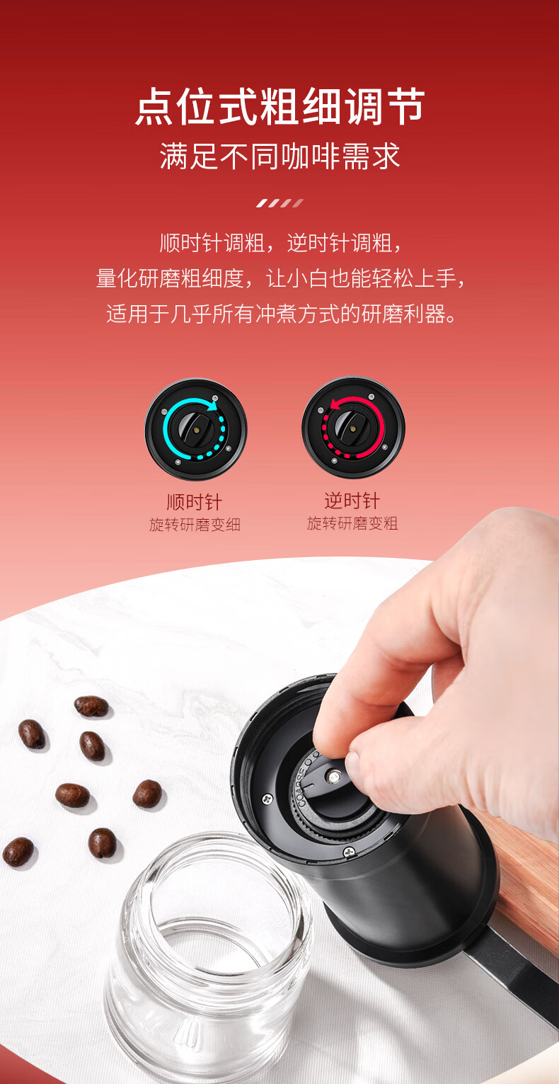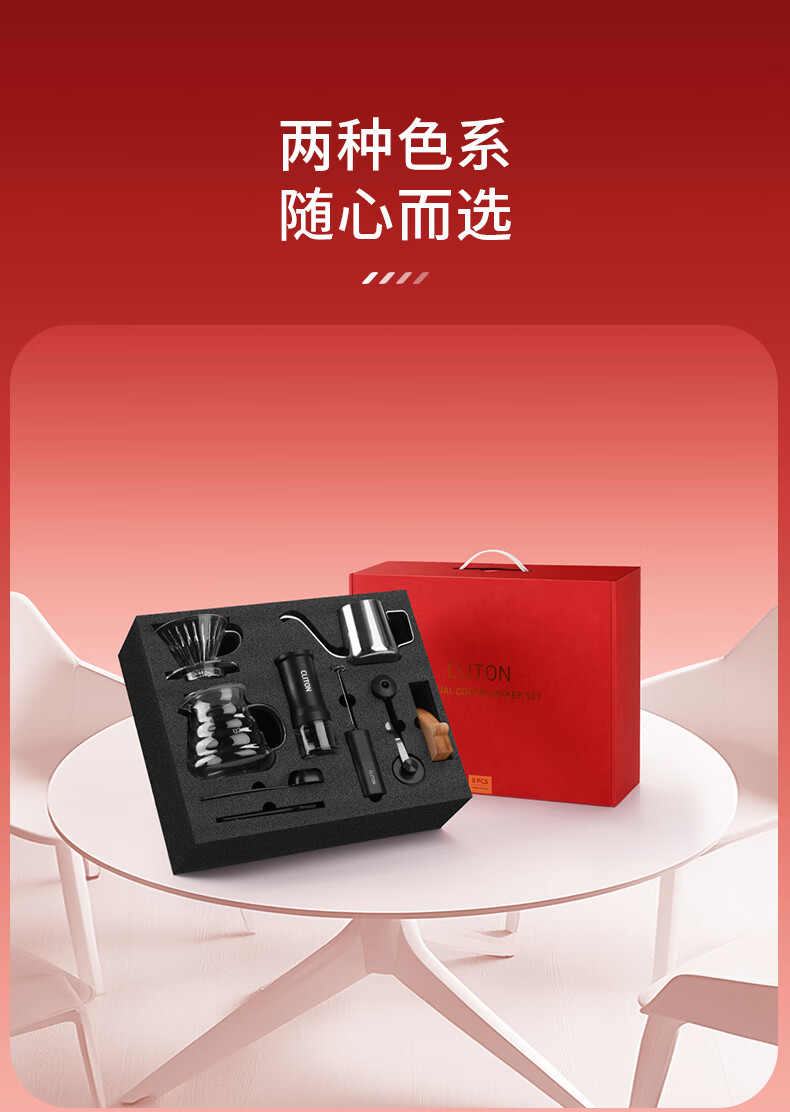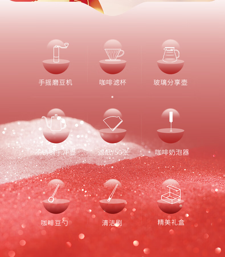 积分免费兑:CLITON手摇磨豆机咖啡豆研磨机手磨咖啡机咖啡壶滤杯手冲壶新年礼盒套装