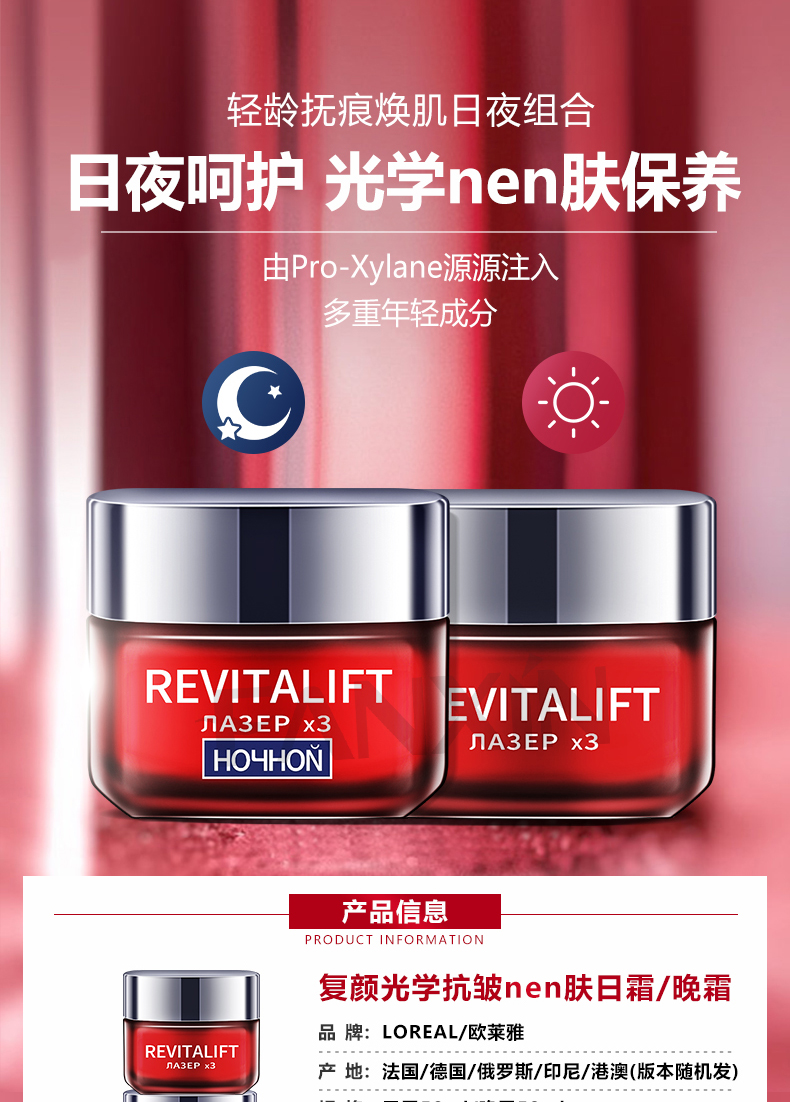 【保税仓】欧莱雅复颜光学嫩肤弹力抚痕日霜50ML、晚霜50ML